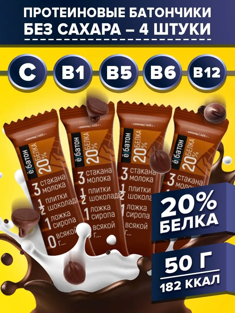 Протеиновый глазированный батончик 20% белка, со вкусом печенья, 50гр., 4шт. Батончики Ёбатон утоляют голод и длительное время являются надежными источником энергии, обеспечивают организм энергией и без набора лишнего веса, в отличие от десертов с сахаром, булочек или пирожных в обеденный перерыв.Находясь в автомобильной пробке или офисе, на отдыхе с друзьями или на парах, на велопрогулке или в спортзале - для восполнения энергии при отсутствии возможности полноценного приема пищи или между ними воспользуйся батончиками от ТМ Ёбатон! В состав батончиков от ТМ Ёбатон входят витамины и минералы, различные виды протеина, клетчатка и особые активные компоненты. Важно, что они предназначены не только для спортсменов, а для всех людей, следящих за своим питанием. Состав глазури: заменитель какао - масла, эмульгатор лецитин, какао порошок, молоко сухое цельное. Без добавления сахара.