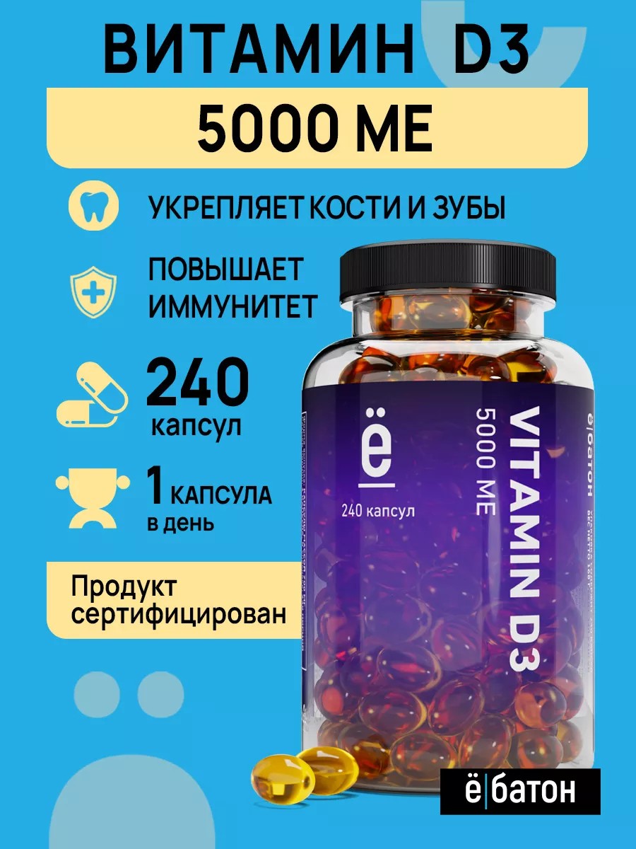 Ёбатон Витамин Д3 5000 МЕ для иммунитета 240 капсул бад
