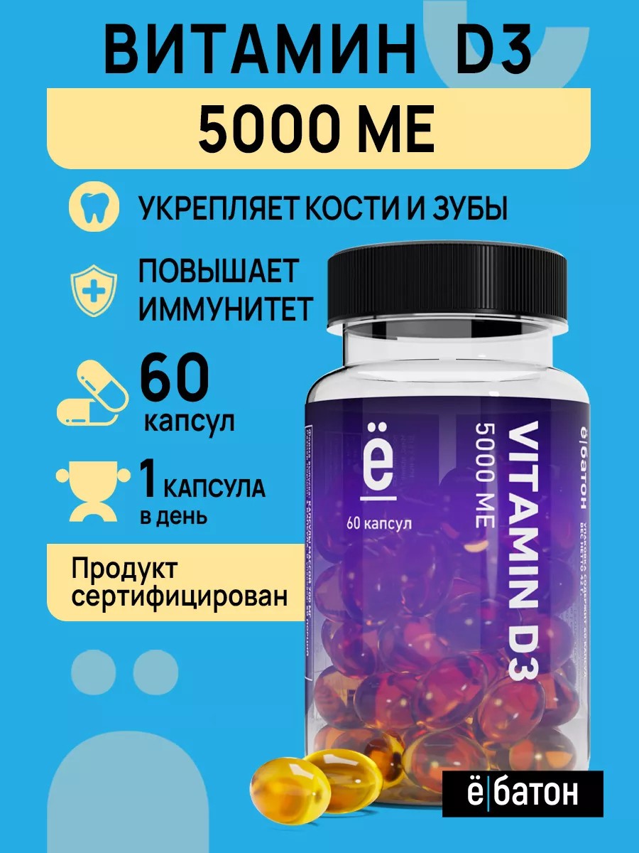 Ёбатон Витамин Д3 5000 МЕ бад для иммунитета 60 капсул