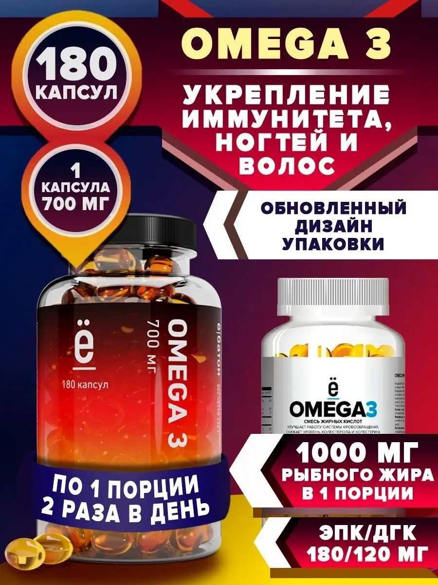 Ёбатон Витамин Омега3 180 капсул. Одна порция 1000 мг