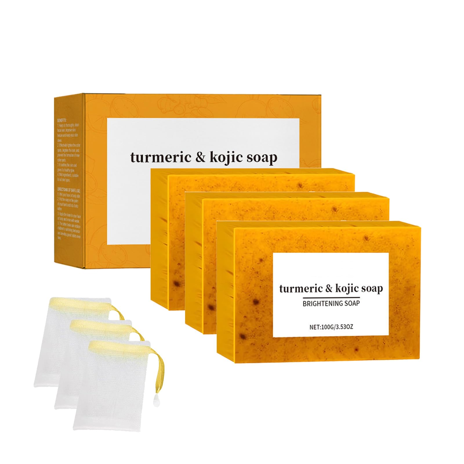 : Refine your daily skin care with our natural turmeric soap with kojic acid and lemon – a powerful yet gentle solution for deep cleansing, lightening and moisturizing. This 100 g heavy, handmade turmeric granulate soap is suitable for face and body and helps remove dark spots, refine pores and smooth the skin structure. The synergistic blend of turmeric facial soap, kojic acid soap and lemon extract gently brightens and evens out skin tone. The refreshing and moisturizing formula ensures that your skin remains hydrated and refreshed after every use. Whether you want to combat fine lines, dullness or uneven skin tone, this fragrance-free, natural turmeric soap provides pure, organic care for healthy, radiant skin. This turmeric soap for body and face is perfect for all skin types and a must for anyone who wants a natural, deep cleansing action with visibly brightening and firming results. Transform your shower into a spa with every application of this luxurious turmeric cleansing bar. SAFETY WARNING Store in a cool, dry place and protect from sunlight. Keep out of the reach of children.Tightens and Refines Pores: Helps tighten and shrink pores for a smoother, clearer skin texture, making it an ideal peeling and refining treatment for face and body. Natural and Organic Ingredients: This handmade granular turmeric soap bar is made from lemon turmeric and kojic acid, offering a pure, natural formula that is suitable for all skin types, including sensitive skin. Moisturizing and caring: gently cleanses while retaining the skin's moisture. Your face and body remain soft, smooth and naturally hydrated, without feelings of tension or dryness. Lightens Dark Spots: This organic turmeric soap enriched with natural turmeric and kojic acid helps fade dark spots and smooth the complexion. Deep Cleansing Formula: This bar of turmeric soap deeply cleanses pores and effectively removes dirt, oil and impurities, leaving your skin feeling fresh and rejuvenated.Natuurlijke kurkuma-zeep met kojïzuur en citroen – dieptereinigende, witmakende en hydraterende gezichts- en lichaamszeep voor donkere vlekken, verstevigende poriën (3) Productomschrijving: Verfijn je dagelijkse huidverzorging met onze natuurlijke kurkuma-zeep met kojïzuur en citroen – een krachtige en tegelijkertijd zachte oplossing voor dieptereinigend, lichter en hydraterend effect. Deze 100 g zware, handgemaakte kurkuma granulaatzeep is geschikt voor gezicht en lichaam en helpt donkere vlekken te verwijderen, poriën te verfijnen en de huidstructuur glad te maken. De synergetische mix van kurkuma gezichtszeep, kojiszuurzeep en citroenextract verheldert de huidtint zachtjes en egaliseert deze. De verfrissende en hydraterende formule zorgt ervoor dat je huid na elk gebruik gehydrateerd en verfrist blijft. Of je nu fijne lijntjes, dofheid of een ongelijkmatige huidtint wilt bestrijden, deze parfumvrije, natuurlijke kurkuma-zeep biedt een zuivere, biologische verzorging voor een gezonde, stralende huid. Deze kurkuma-zeep voor lichaam en gezicht is perfect voor alle huidtypes en een must voor iedereen die een natuurlijke, diep reinigende werking met zichtbaar verhelderende en verstevigende resultaten wil. Verander je douche met elke toepassing van deze luxe kurkuma reinigingsreep in een spa. VEILIGHEIDSWAARSCHUWING Op een koele, droge plaats bewaren en tegen zonlicht beschermen. Buiten het bereik van kinderen bewaren.Verstevigt en verfijnt de poriën: helpt de poriën te verstevigen en te verkleinen, voor een gladdere, zuiverdere huidstructuur, waardoor het een ideale peeling en verfijningsbehandeling voor gezicht en lichaam is. Natuurlijke en organische ingrediënten: dit handgemaakte, korrelige kurkuma zeepstuk is gemaakt van citroenkurkuma en kojïzuur en biedt een zuivere, natuurlijke formule die geschikt is voor alle huidtypes, inclusief de gevoelige huid. Vochtinbrengend en verzorgend: reinigt zacht en behoudt tegelijkertijd het vocht van de huid. Je gezicht en lichaam blijven zacht, glad en natuurlijk gehydrateerd, zonder dat er spanningsgevoelens of droogheid ontstaan. Verlicht donkere vlekken: deze biologische kurkuma zeep verrijkt met natuurlijk kurkuma en kojïzuur helpt donkere vlekken te vervagen en de teint glad te maken. Diepreinigende formule: dit stuk kurkuma-zeep reinigt de poriën grondig en verwijdert effectief vuil, olie en onzuiverheden, zodat je huid fris en verjongd aanvoelt.