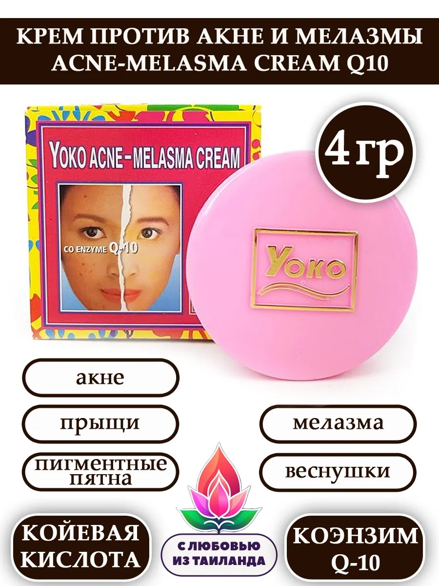 Отличное средство для тех, кто мечтает избавиться от акне, прыщей, пигментных пятен, мелазмы или веснушек! Крем от известной фирмы Yoko очень популярен в Таиланде, так как имеет высокую эффективность, отличается экономичностью и компактными размерами! Крем впитывается, не оставляя ощущения жирности и липкости, при регулярном использовании быстро дает положительный результат, защищает от свободных радикалов и УФ лучей.