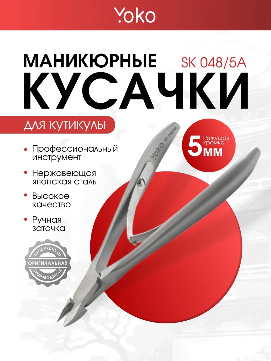 Yoko Кусачки для кутикулы профессиональные двойная пружина кромка 5мм, с низким наклоном режущей кромки SK 048/5A.