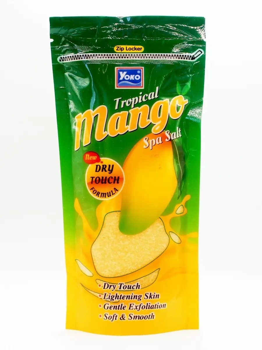 **Скраб для тела солевой Манго Spa Salt от таиландского бренда Yoko прекрасное средство для ухода за кожей. Спа-соль имеет очень приятный, яркий и свежий аромат манго. Скраб очищает эпидермис от грязи, сального секрета, пыли, выравнивает тон кожи, освобождает кожный покров от ороговевших и мертвых частичек эпидермиса. Спа-соль оказывает массажный эффект, улучшая микроциркуляцию кожи. Соль мелкого помола насыщена фруктовыми экстрактами и маслами, что делает уход за телом приятным и полезным. Скраб для тела это отличный помощник, чтобы сделать вашу кожу упругой, гладкой и подтянутой. Оптимальное использование спа-соли - 1-2 раза в неделю, ежедневное применение не рекомендуется.** **способ применения : н**анести небольшое количество скраба на влажную кожу, втирать круговыми массажными движениями, после чего тщательно смыть.
