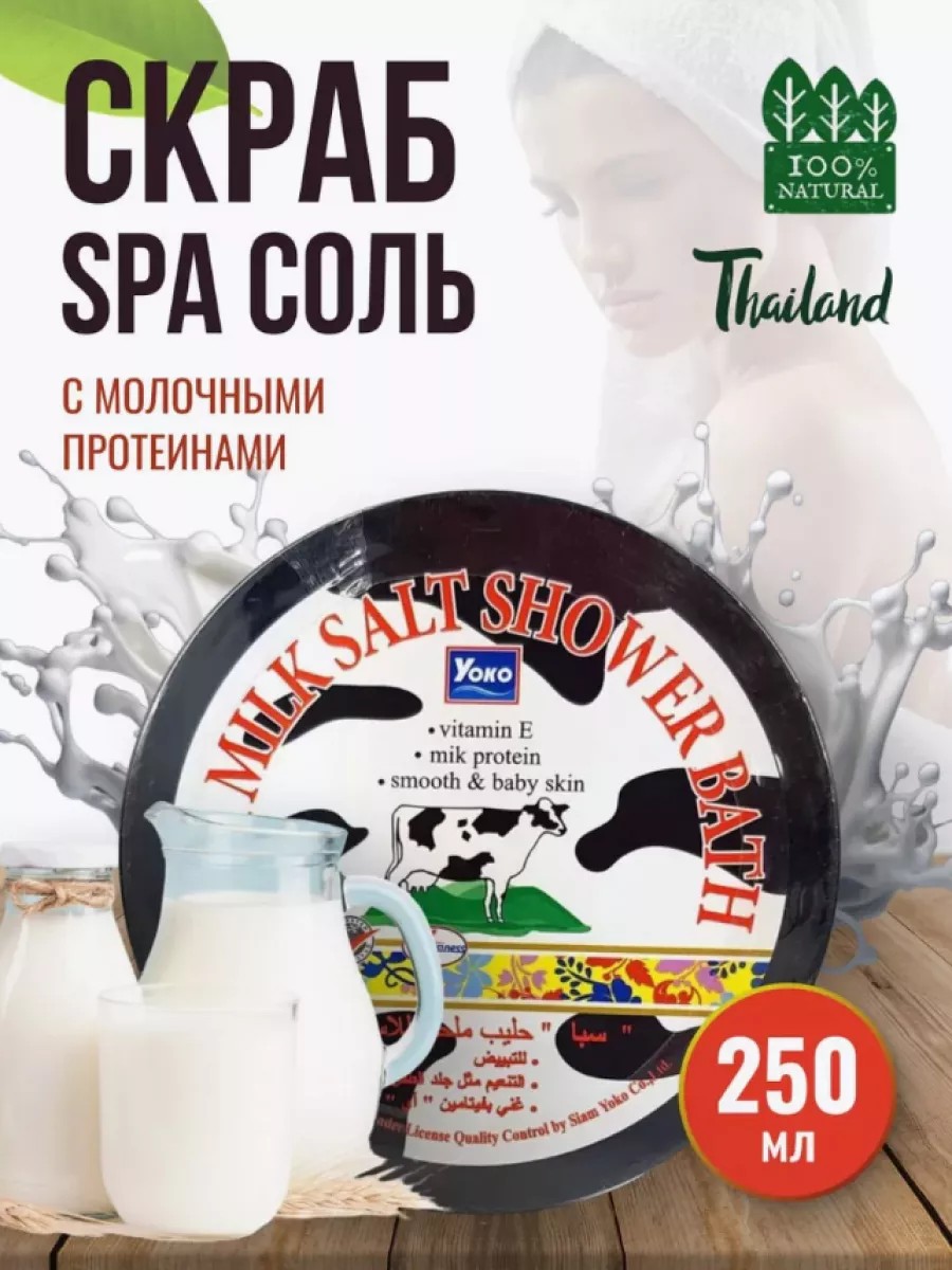 Соль скраб для тела из Тайланда. Содержит фруктовые кислоты AHA которые мягко отшелушивают верхний ороговевший слой клеток не повреждая кожу (эпидермис), содержит витамин В3 , насыщает кожу ценными компонентами и минералами, которые так необходимы нашей коже, а так коллаген который восполнет уровень увлажненности делае кожу мягкой и шелковистой, Эта Соль скраб отлично подойдет как подарок жене, маме или подруге на день рождения, 8 марта, новый год или любой другой праздник!
