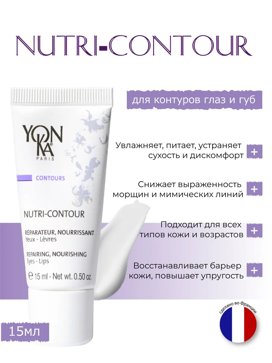 Yon-Ka Nutri-Contour for eyelids and lips is an ultra-nourishing cosmetic product that relieves dryness, fatigue, and discomfort from the skin around the eyes. It moisturizes and nourishes while reducing the appearance of fine lines and crow's feet. It has a rich, creamy consistency. Essential vitamins contained in its formula prevent dehydration.
