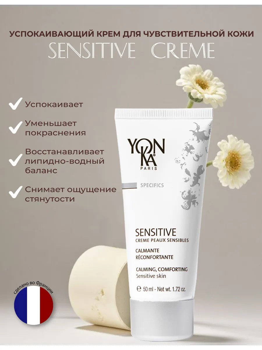 Yon-Ka Sensitive Crème — профессиональный французский крем для чувствительной и гиперреактивной кожи, разработанный для ежедневного ухода и интенсивного увлажнения. Средство эффективно снижает кожную гиперреактивность, повышает порог толерантности и мгновенно устраняет дискомфорт, такой как стянутость и зуд, возвращая чувство комфорта. Гипоаллергенная формула без парабенов, отдушек и эфирных масел минимизирует риск аллергии, протестирована дерматологами на переносимость, некомедогенна, что делает продукт безопасным даже для самой деликатной kожи. Активный комплекс Yonka SENSIBIOTIC, включающий пребиотики, пробиотики и экстракт морской маргаритки, оказывает успокаивающее, антивозрастное и десенсибилизирующее действие. Масло ши питает и защищает, бисаболол снимает раздражение, а растительный глицерин, оливковый фитосквалан и полисахариды с фукозой глубоко увлажняют и смягчают эпидермис. Дополнительно гиалуроновая кислота, пантенол, ниацинамид и церамиды способствуют укреплению кожнoго барьера, восстановлению структуры дермиса и профилактике сухости и шелушений. Йонка Сенситив подходит для мужчин и женщин, полезен при куперозе, розацеа и склонности к покраснениям, а также для атопичной и проблемной кoжи. Помогает снять неприятное ощущение после макияжа или воздействия неблагоприятных факторов окружающей среды. Сокращает видимость морщин, выравнивает тон, увеличивает упругость и эластичность. Регулярное применение улучшает лимфодренаж, убирает отёчность, препятствует появлению тёмных кругов и придаёт лицу естественное сияние.