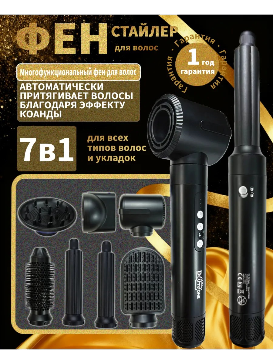 7 in 1 Multi-styler with attachments, 1400W, 3 speeds. Hair curling iron, it has all the necessary functions. Whether you have long or short hair, this hair dryer will make your hairstyle perfect.