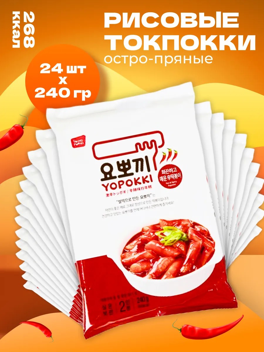 Изделия из рисовой крупы токпоки с остро-пряным соусом от торговой марки Yopokki - это популярная азиатская еда быстрого приготовления. Рисовые клецки токпоки тушатся в остром соусе с насыщенным пряным вкусом, после чего продукт подается к столу. Токкпоки - одна из самых популярных и вкусных готовых закусок на кухнях Южной Корей. Полуфабрикат ттокпокки вкусный, сытный, прекрасно утоляет голод. Очень удобен в приготовлении, подходит для дальней поездки, насыщенного рабочего или учебного дня. Для получения качественного полноценного обеда вам понадобится только кипяток и глубокая тарелка. Способ приготовления: Перемешайте рисовые палочки с соусом и 50 мл воды. Немного приоткройте крышку. Поместите в микроволновку на 60-90 секунд (1000W), либо на 120-150 секунд (700W). Вы можете выбрать комплект с необходимым количеством продуктов внутри карточки. Пожалуйста, не стесняйтесь оставлять отзывы! Мы внимательно относимся к качеству товаров и обязательно дадим вам обратную связь.