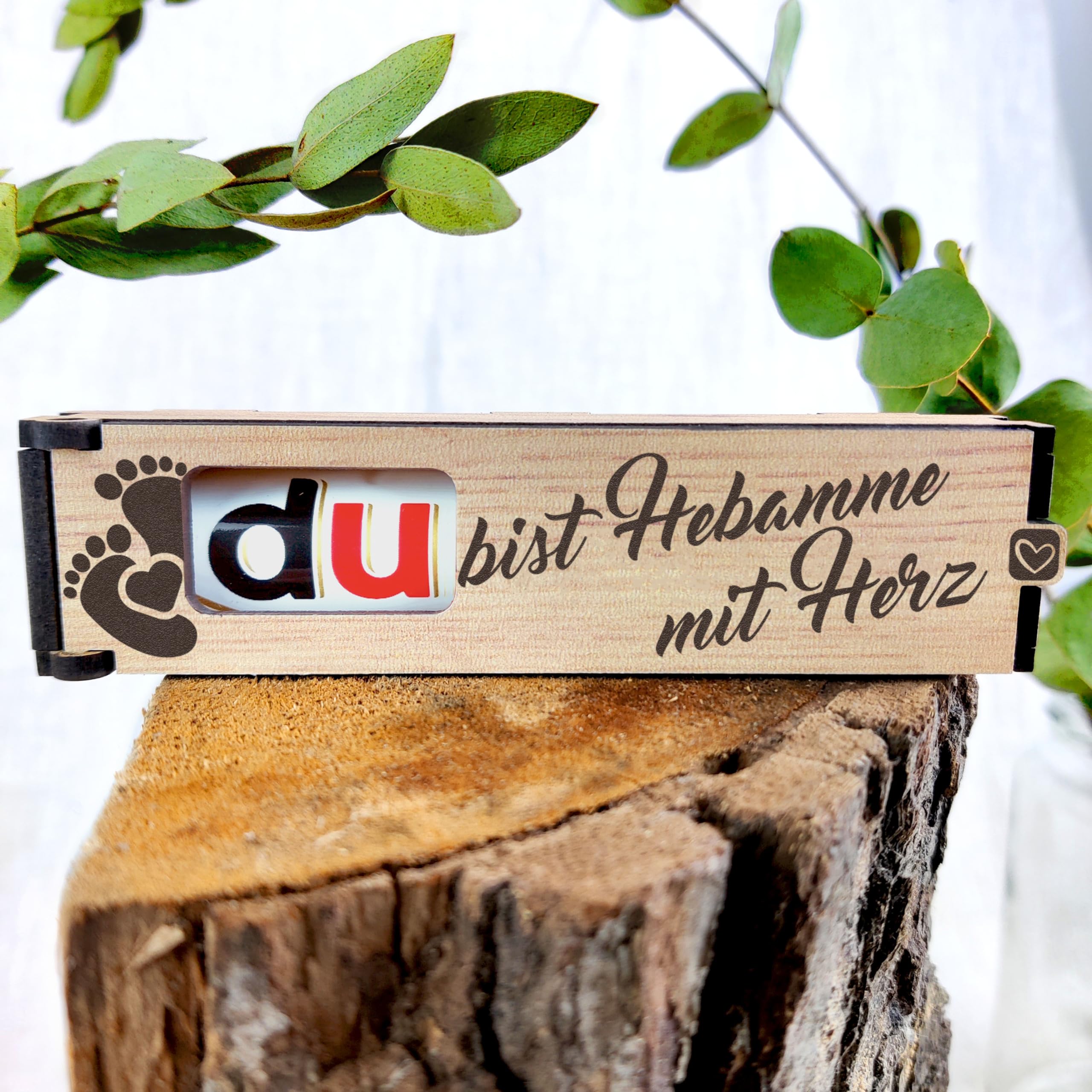 ? The duplo chocolates fit perfectly into the box and are stored safely and protected.The box is a wonderful little gimmick that comes from the heart.?? Show your midwife with this chocolate gift how important it is for you.It is perfect for Christmas, birthday or simply as a small thank you.?? This gift will surely be a sweet surprise for your midwife and make your hearts beat faster.Surprise you with this unique and delicious gift!.?? The box is made of high quality wood and provided with a special saying.Each box is precisely lasered to ensure that every detail is perfect.?? This wooden duplobox is a sweet and unique gift idea for your midwife.The box comes including the longest praline in the world.