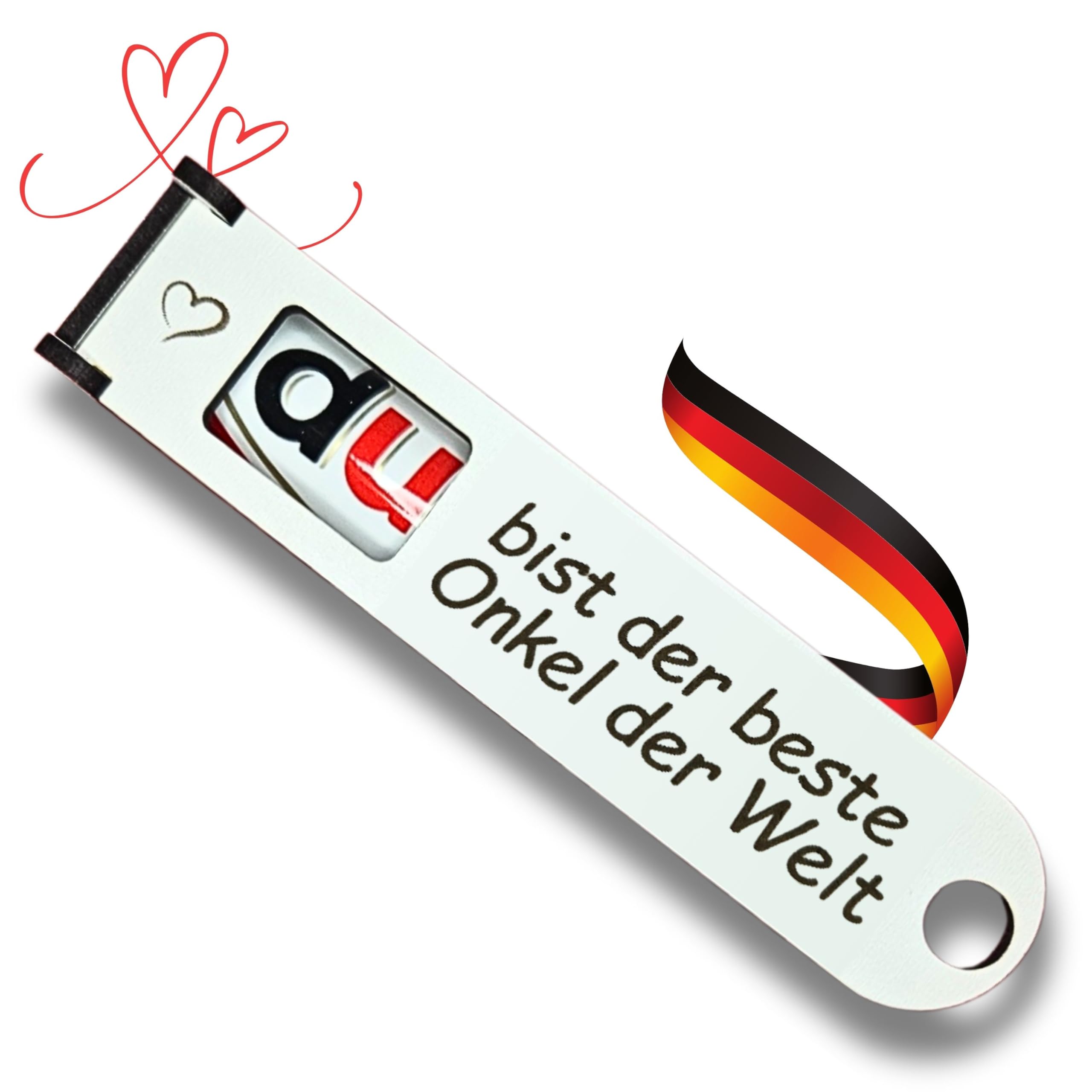 Discover the ideal way to say your uncle with our lovingly put together gift set: ""You are the best uncle of the world!"" Ideal for birthdays, Mother's Day or simply as a sign of your appreciation:- Holzbox- NOTEBLATY-CONLOPHAPE INCOLLIPATION- Clip-clip-Clip-Duplo Riegel ingredient directoryFor the chocolates: whole milk chocolate 49.5 (sugar, cockatter, whole milk powder, cocoa mass, emulsifier Sojalecithin, vanillin), sugar, herbal fats, flour: wheat, rye Hazelnuts, low -fat cocoa, sweet whey powder, emulsifier Soyalecithin, protein -enriched whey powder, wheat thickness, salt, baking agent: sodium hydrogen carbonate, ammonium carbonate, vanillin. In Germany handmade box is a perfect little thing as a gift for men and women.The box made of high-quality, white HDF wood plate measures approx. 2xm x 13.5 cm x 3cm.With this set you don't have to worry about additional wrapping paper.Everything you need for a touching gift is already included.Whether you choose a financial gesture or warm words, the joy of the recipient is certain. During the sweet surprise, the box remains as a durable memory.Their stable construction and the high -quality material guarantee that the memories of this special day will be preserved.The versatility of the design allows the box to also use the box as a decorative element or to reuse for future occasions. Ingredients ingredients ChocolateQuality: We have put together this gift set with the greatest care.We stand for quality and well -thought -out design to make your special moments unforgettable.Ideal for birthdays and Mother's Day: With the funny and loving design of our gift box, the heart is touched by every uncle.Made in Germany: lasered and handmade from stable white HDF wood plate.Quality checked for a long -lasting decoration memory perfect as money gifts packaging.Practical: to add everything in a set - with the option, money or personal message.No additional wrapping paper necessary.Complete gift set: handmade box including chocolate, embassy sheet and cellophane bag with lock clip - the perfect birthday present or mother's day.Entdecken Sie die ideale Art, Ihren Onkel mit unserem liebevoll zusammengestellten Geschenkset zu sagen: "Du bist der beste Onkel der Welt!" Ideal für Geburtstage, Muttertag oder einfach als Zeichen Ihrer Wertschätzung: - Holzbox- Notizblatt- Zellophantüte- Verschlussclip- Duplo Riegel Zutatenverzeichnis für die Pralinen: Vollmilchschokolade 49,5 ( Zucker, Kakobutter, Vollmilchpulver, Kakaomasse, Emulgator Sojalecithin, Vanillin ) , Zucker, pflanzliche Fette, Mehle: Weizen, Roggen Haselnüsse, fettarmer Kakao, Süßmolkenpulver, Emulgator Sojalecithin, eiweißangereichertes Molkenpulver, Weizenstärke, Salz, Backtriebmittel: Natriumhydrogencarbonat, Ammoniumcarbonat, Vanillin.Unsere in Deutschland handgefertigte Box ist eine perfekte Kleinigkeit als Geschenk für Männer und Frauen. Die Box aus hochwertiger, weißer HDF-Holzplatte misst ca. 2xm x 13,5cm x 3cm. Mit diesem Set müssen Sie sich keine Gedanken über zusätzliches Geschenkpapier machen. Alles, was Sie für ein berührendes Geschenk benötigen, ist bereits enthalten. Ob Sie sich für eine finanzielle Geste oder herzliche Worte entscheiden, die Freude des Beschenkten ist Ihnen sicher.Während die süße Überraschung genossen wird, bleibt die Box als langlebiges Erinnerungsstück. Ihre stabile Bauweise und das hochwertige Material garantieren, dass die Erinnerungen an diesen besonderen Tag erhalten bleiben. Die Vielseitigkeit des Designs erlaubt es, die Box auch als dekoratives Element zu nutzen oder für zukünftige Anlässe wiederzuverwenden. INHALTSSTOFFE ZUTATEN SchokoladeQualität: Wir haben dieses Geschenkset mit größter Sorgfalt zusammengestellt. Wir stehen für Qualität und durchdachtes Design, um Ihre besonderen Momente unvergesslich zu machen. Ideal für Geburtstage und Muttertag: Mit der witzigen und liebevollen Gestaltung unserer Geschenkbox wird das Herz jeden Onkels berührt. Made In Germany: aus stabiler weißer HDF Holz Platte gelasert und handgefertigt. Qualität geprüft für ein langlebiges Deko Erinnerungsstück perfekt als Geldgeschenke Verpackung. Praktisch: Alles in einem Set – mit der Option, Geld oder eine persönliche Nachricht hinzuzufügen. Kein zusätzliches Geschenkpapier nötig. Komplettes Geschenkset: Handgefertigte Box inklusive Schokolade, Botschaftsblatt und Zellophanbeutel mit Verschlussclip – das perfekte Geburtstagsgeschenk oder Muttertag.Du bist der beste Onkel der Welt - Originelle DUPLO Schokoriegel Geschenkbox mit Geldschein-Fach zum Personalisieren (Onkel)
