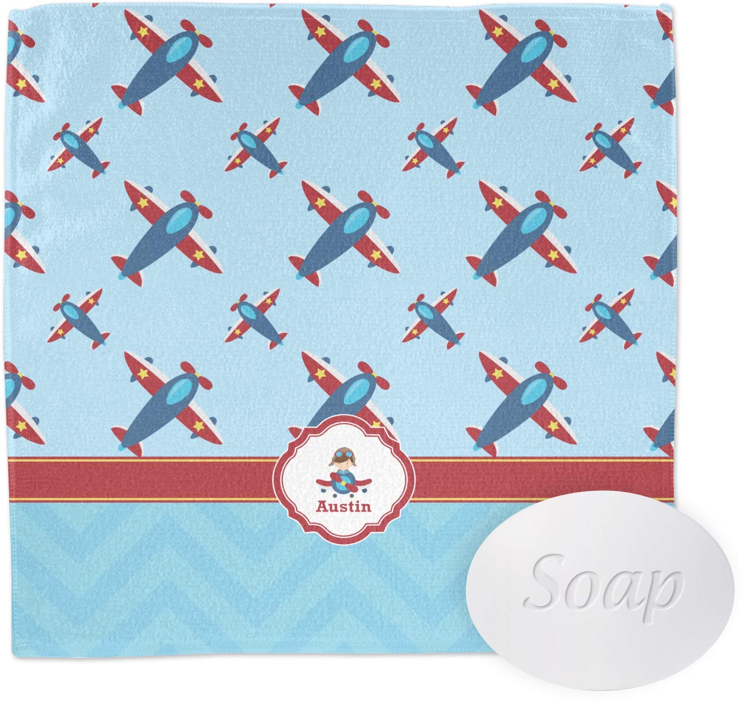 These super-soft microfiber washcloths are perfect for your face and body! These personalized face towels are beautiful, yet incredibly functional, making them the ideal addition to any bathroom in your home! These washcloths are both functional and decorative; when customized, these towels are an easy way to change up your bathroom's decor. Customize a few for yourself and your family, or give a few to friends and relatives as thoughtful, yet practical gifts! The square 12x12 face cloth is 100% microfiber, so it feel thin, however, it is very soft-to-the-touch and it is super absorbent. The soft texture makes it multipurpose; you can use this as an exfoliating washcloth for your face and body, but it can also serve as a baby's washcloth! We print your customized design across the face of this towel, while the back remains a white in color. The round corner 13x13 face towel is partly microfiber and partly cotton, The top features a luxurious, velvety-soft velour like microfiber that feels gentle on your skin, while the bottom features cotton loops. The dual texture of this face cloth makes it thicker (especially compared to the square one). It is also multi-purpose towel and ideal for your face, as well as your body. Your customization is displayed across the front of the this towel, while the back remains white in color. Design Shown: Airplane Theme (#51793) Features: ==================================== * [Soft and Absorbent]: Made from a blend of polyester, polyamide, and cotton for a soft, absorbent feel. * [Two Style Options]: Available in square (12" x 12") and rounded corner (13" x 13") designs. * [Multipurpose Use]: Suitable for use on face, body, and even gentle enough for baby's skin. * [Easy Care]: Machine-washable in warm water with mild detergent, hang to dry or dry on low heat. Care Instructions: ==================================== * Machine wash in warm water with mild detergent, on a gentle cycle * Avoid fabric softener, and avoid washing alongside cotton towels * Hang to dry or dry on low heat[Easy Care]: Machine-washable in warm water with mild detergent, hang to dry or dry on low heat. [Multipurpose Use]: Suitable for use on face, body, and even gentle enough for baby's skin. [Two Style Options]: Available in square (12" x 12") and rounded corner (13" x 13") designs. [Soft and Absorbent]: Made from a blend of polyester, polyamide, and cotton for a soft, absorbent feel. [Flying Pilot]: Personalize the the text in this airplane design for a future pilot.