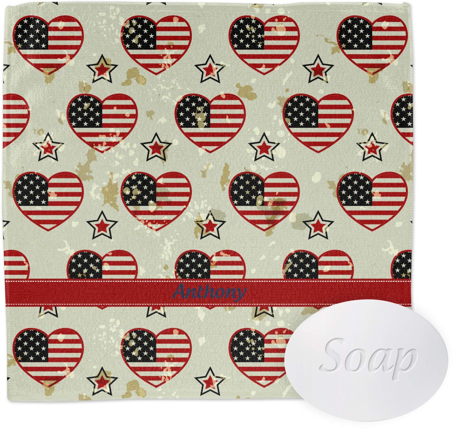 These super-soft microfiber washcloths are perfect for your face and body! These personalized face towels are beautiful, yet incredibly functional, making them the ideal addition to any bathroom in your home! These washcloths are both functional and decorative; when customized, these towels are an easy way to change up your bathroom's decor. Customize a few for yourself and your family, or give a few to friends and relatives as thoughtful, yet practical gifts! The square 12x12 face cloth is 100% microfiber, so it feel thin, however, it is very soft-to-the-touch and it is super absorbent. The soft texture makes it multipurpose; you can use this as an exfoliating washcloth for your face and body, but it can also serve as a baby's washcloth! We print your customized design across the face of this towel, while the back remains a white in color. The round corner 13x13 face towel is partly microfiber and partly cotton, The top features a luxurious, velvety-soft velour like microfiber that feels gentle on your skin, while the bottom features cotton loops. The dual texture of this face cloth makes it thicker (especially compared to the square one). It is also multi-purpose towel and ideal for your face, as well as your body. Your customization is displayed across the front of the this towel, while the back remains white in color. Design Shown: Americana (#284360) Features: ==================================== * [Soft and Absorbent]: Made from a blend of polyester, polyamide, and cotton for a soft, absorbent feel. * [Two Style Options]: Available in square (12" x 12") and rounded corner (13" x 13") designs. * [Multipurpose Use]: Suitable for use on face, body, and even gentle enough for baby's skin. * [Easy Care]: Machine-washable in warm water with mild detergent, hang to dry or dry on low heat. Care Instructions: ==================================== * Machine wash in warm water with mild detergent, on a gentle cycle * Avoid fabric softener, and avoid washing alongside cotton towels * Hang to dry or dry on low heat[Easy Care]: Machine-washable in warm water with mild detergent, hang to dry or dry on low heat. [Multipurpose Use]: Suitable for use on face, body, and even gentle enough for baby's skin. [Two Style Options]: Available in square (12" x 12") and rounded corner (13" x 13") designs. [Soft and Absorbent]: Made from a blend of polyester, polyamide, and cotton for a soft, absorbent feel. [Vintage Patriot]: Create your own patriotic look with customized text in this retro heart design.