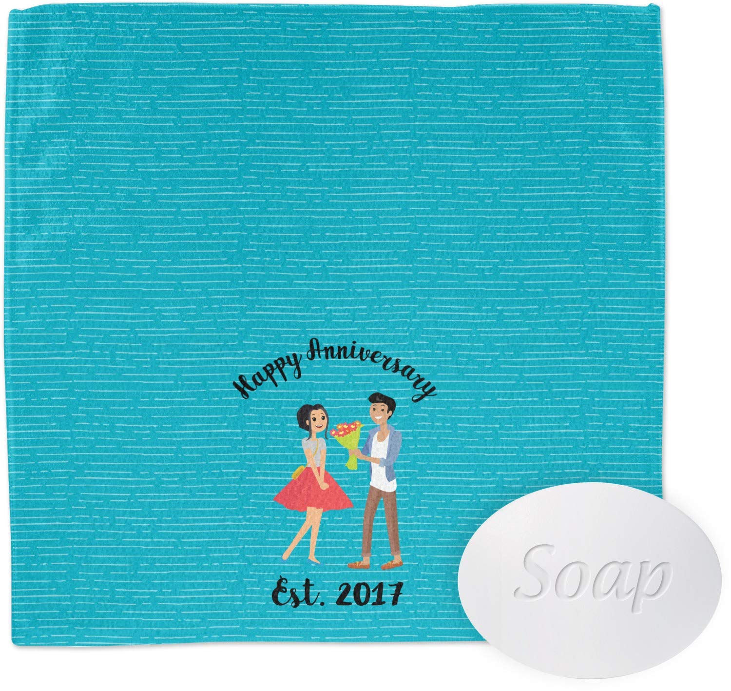 These super-soft microfiber washcloths are perfect for your face and body! These personalized face towels are beautiful, yet incredibly functional, making them the ideal addition to any bathroom in your home! These washcloths are both functional and decorative; when customized, these towels are an easy way to change up your bathroom's decor. Customize a few for yourself and your family, or give a few to friends and relatives as thoughtful, yet practical gifts! The square 12x12 face cloth is 100% microfiber, so it feel thin, however, it is very soft-to-the-touch and it is super absorbent. The soft texture makes it multipurpose; you can use this as an exfoliating washcloth for your face and body, but it can also serve as a baby's washcloth! We print your customized design across the face of this towel, while the back remains a white in color. The round corner 13x13 face towel is partly microfiber and partly cotton, The top features a luxurious, velvety-soft velour like microfiber that feels gentle on your skin, while the bottom features cotton loops. The dual texture of this face cloth makes it thicker (especially compared to the square one). It is also multi-purpose towel and ideal for your face, as well as your body. Your customization is displayed across the front of the this towel, while the back remains white in color. Design Shown: Happy Anniversary (#1075291) Features: ==================================== * [Soft and Absorbent]: Made from a blend of polyester, polyamide, and cotton for a soft, absorbent feel. * [Two Style Options]: Available in square (12" x 12") and rounded corner (13" x 13") designs. * [Multipurpose Use]: Suitable for use on face, body, and even gentle enough for baby's skin. * [Easy Care]: Machine-washable in warm water with mild detergent, hang to dry or dry on low heat. Care Instructions: ==================================== * Machine wash in warm water with mild detergent, on a gentle cycle * Avoid fabric softener, and avoid washing alongside cotton towels * Hang to dry or dry on low heat[Easy Care]: Machine-washable in warm water with mild detergent, hang to dry or dry on low heat. [Multipurpose Use]: Suitable for use on face, body, and even gentle enough for baby's skin. [Two Style Options]: Available in square (12" x 12") and rounded corner (13" x 13") designs. [Soft and Absorbent]: Made from a blend of polyester, polyamide, and cotton for a soft, absorbent feel. [Personalized Anniversary]: Create a unique anniversary gift that features your own custom text.