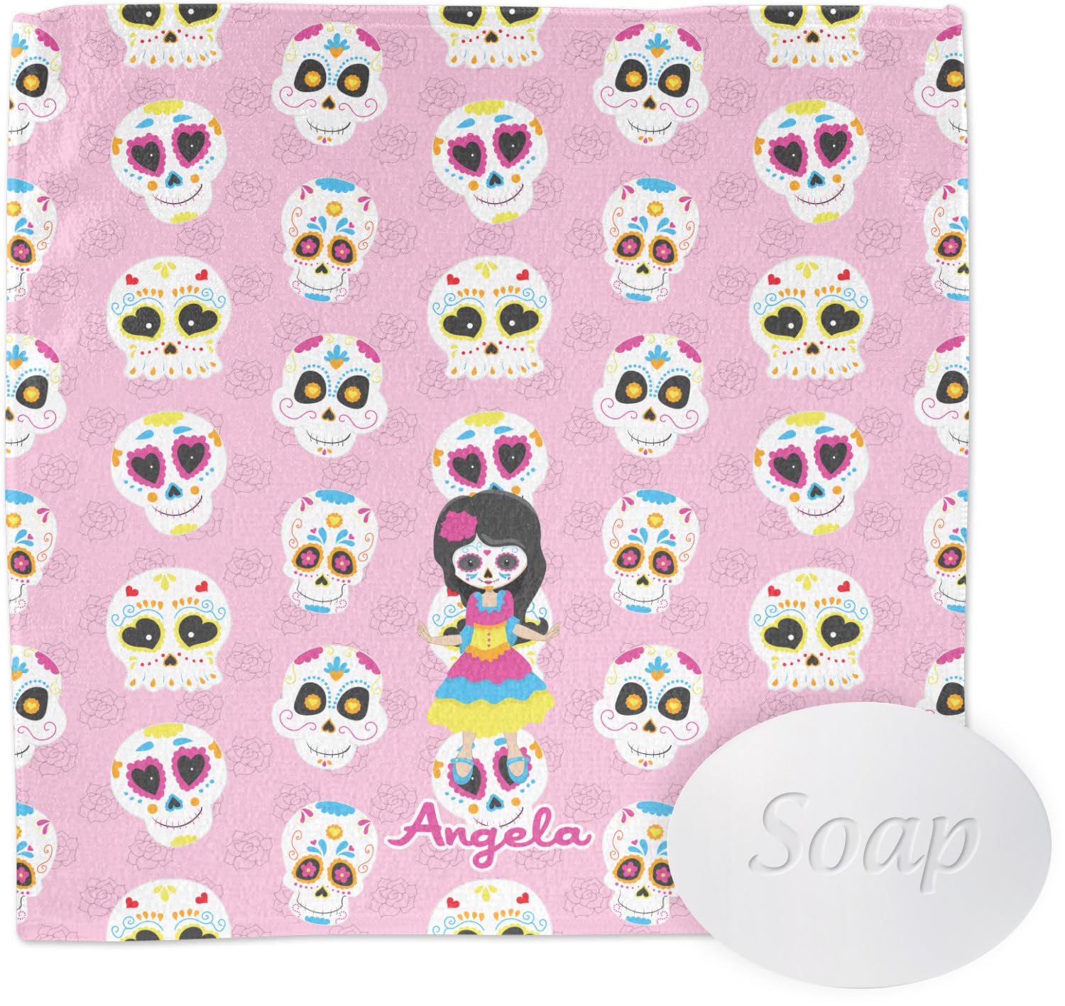 These super-soft microfiber washcloths are perfect for your face and body! These personalized face towels are beautiful, yet incredibly functional, making them the ideal addition to any bathroom in your home! These washcloths are both functional and decorative; when customized, these towels are an easy way to change up your bathroom's decor. Customize a few for yourself and your family, or give a few to friends and relatives as thoughtful, yet practical gifts! The square 12x12 face cloth is 100% microfiber, so it feel thin, however, it is very soft-to-the-touch and it is super absorbent. The soft texture makes it multipurpose; you can use this as an exfoliating washcloth for your face and body, but it can also serve as a baby's washcloth! We print your customized design across the face of this towel, while the back remains a white in color. The round corner 13x13 face towel is partly microfiber and partly cotton, The top features a luxurious, velvety-soft velour like microfiber that feels gentle on your skin, while the bottom features cotton loops. The dual texture of this face cloth makes it thicker (especially compared to the square one). It is also multi-purpose towel and ideal for your face, as well as your body. Your customization is displayed across the front of the this towel, while the back remains white in color. Design Shown: Kids Sugar Skulls (#604499) Features: ==================================== * [Soft and Absorbent]: Made from a blend of polyester, polyamide, and cotton for a soft, absorbent feel. * [Two Style Options]: Available in square (12" x 12") and rounded corner (13" x 13") designs. * [Multipurpose Use]: Suitable for use on face, body, and even gentle enough for baby's skin. * [Easy Care]: Machine-washable in warm water with mild detergent, hang to dry or dry on low heat. Care Instructions: ==================================== * Machine wash in warm water with mild detergent, on a gentle cycle * Avoid fabric softener, and avoid washing alongside cotton towels * Hang to dry or dry on low heat[Easy Care]: Machine-washable in warm water with mild detergent, hang to dry or dry on low heat. [Multipurpose Use]: Suitable for use on face, body, and even gentle enough for baby's skin. [Two Style Options]: Available in square (12" x 12") and rounded corner (13" x 13") designs. [Soft and Absorbent]: Made from a blend of polyester, polyamide, and cotton for a soft, absorbent feel. [Cute Skulls]: The text in this sugar skull design is customizable, make it unique.