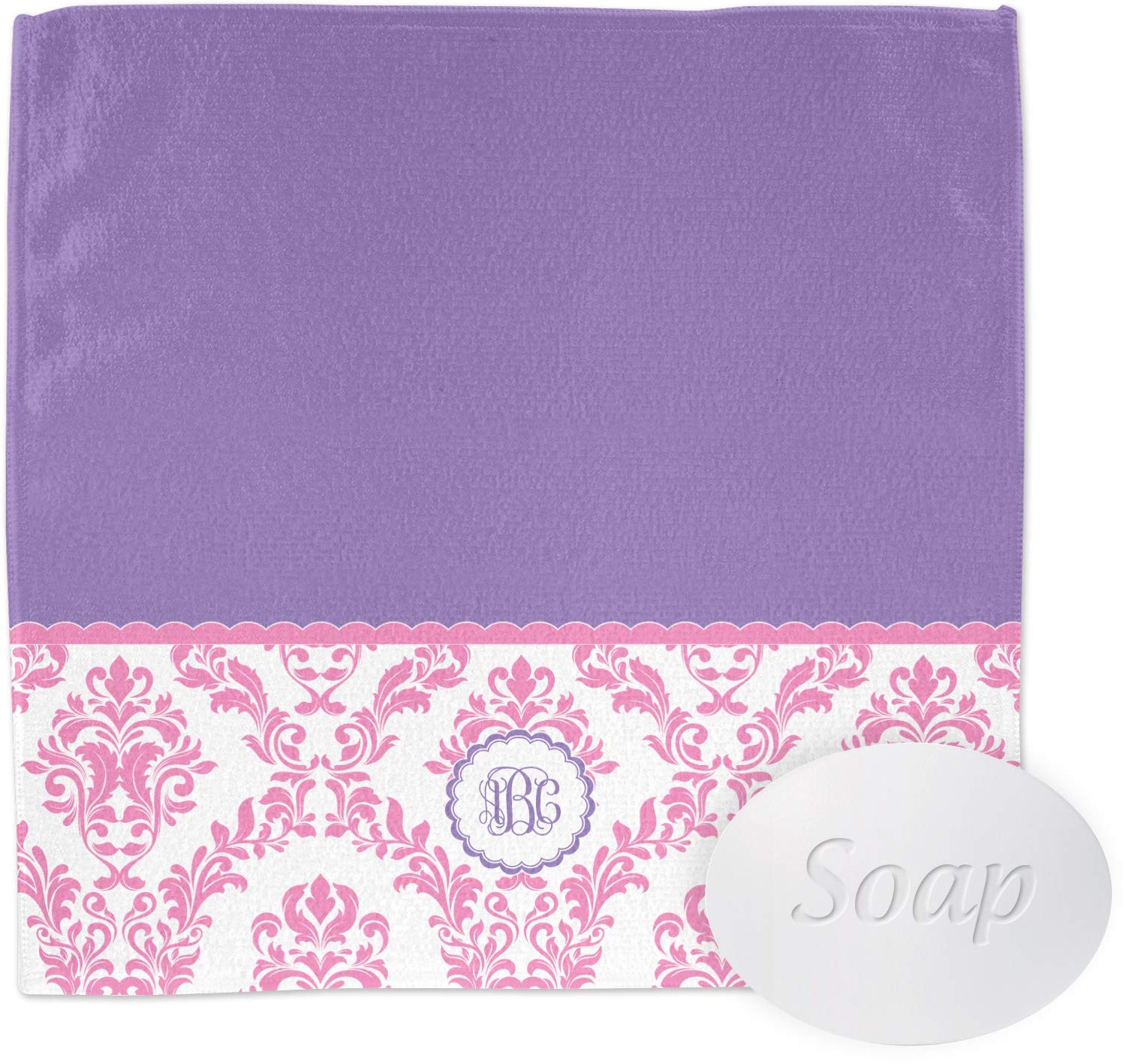These super-soft microfiber washcloths are perfect for your face and body! These personalized face towels are beautiful, yet incredibly functional, making them the ideal addition to any bathroom in your home! These washcloths are both functional and decorative; when customized, these towels are an easy way to change up your bathroom's decor. Customize a few for yourself and your family, or give a few to friends and relatives as thoughtful, yet practical gifts! The square 12x12 face cloth is 100% microfiber, so it feel thin, however, it is very soft-to-the-touch and it is super absorbent. The soft texture makes it multipurpose; you can use this as an exfoliating washcloth for your face and body, but it can also serve as a baby's washcloth! We print your customized design across the face of this towel, while the back remains a white in color. The round corner 13x13 face towel is partly microfiber and partly cotton, The top features a luxurious, velvety-soft velour like microfiber that feels gentle on your skin, while the bottom features cotton loops. The dual texture of this face cloth makes it thicker (especially compared to the square one). It is also multi-purpose towel and ideal for your face, as well as your body. Your customization is displayed across the front of the this towel, while the back remains white in color. Design Shown: Pink, White & Purple Damask (#205928) Features: ==================================== * [Soft and Absorbent]: Made from a blend of polyester, polyamide, and cotton for a soft, absorbent feel. * [Two Style Options]: Available in square (12" x 12") and rounded corner (13" x 13") designs. * [Multipurpose Use]: Suitable for use on face, body, and even gentle enough for baby's skin. * [Easy Care]: Machine-washable in warm water with mild detergent, hang to dry or dry on low heat. Care Instructions: ==================================== * Machine wash in warm water with mild detergent, on a gentle cycle * Avoid fabric softener, and avoid washing alongside cotton towels * Hang to dry or dry on low heat[Easy Care]: Machine-washable in warm water with mild detergent, hang to dry or dry on low heat. [Multipurpose Use]: Suitable for use on face, body, and even gentle enough for baby's skin. [Two Style Options]: Available in square (12" x 12") and rounded corner (13" x 13") designs. [Soft and Absorbent]: Made from a blend of polyester, polyamide, and cotton for a soft, absorbent feel. [Monogram Damask]: Create a unique damask-patterned design with customized text.