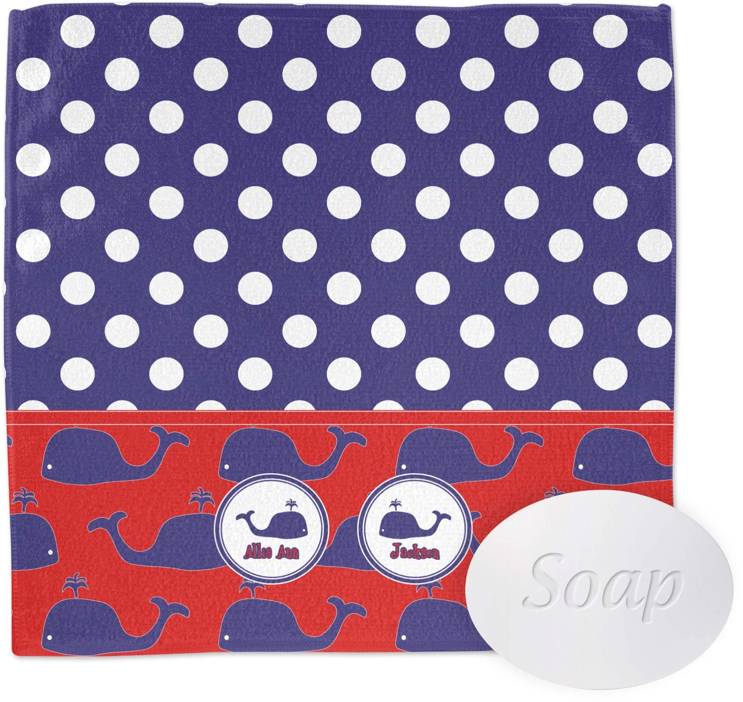 These super-soft microfiber washcloths are perfect for your face and body! These personalized face towels are beautiful, yet incredibly functional, making them the ideal addition to any bathroom in your home! These washcloths are both functional and decorative; when customized, these towels are an easy way to change up your bathroom's decor. Customize a few for yourself and your family, or give a few to friends and relatives as thoughtful, yet practical gifts! The square 12x12 face cloth is 100% microfiber, so it feel thin, however, it is very soft-to-the-touch and it is super absorbent. The soft texture makes it multipurpose; you can use this as an exfoliating washcloth for your face and body, but it can also serve as a baby's washcloth! We print your customized design across the face of this towel, while the back remains a white in color. The round corner 13x13 face towel is partly microfiber and partly cotton, The top features a luxurious, velvety-soft velour like microfiber that feels gentle on your skin, while the bottom features cotton loops. The dual texture of this face cloth makes it thicker (especially compared to the square one). It is also multi-purpose towel and ideal for your face, as well as your body. Your customization is displayed across the front of the this towel, while the back remains white in color. Design Shown: Whale (#201601) Features: ==================================== * [Soft and Absorbent]: Made from a blend of polyester, polyamide, and cotton for a soft, absorbent feel. * [Two Style Options]: Available in square (12" x 12") and rounded corner (13" x 13") designs. * [Multipurpose Use]: Suitable for use on face, body, and even gentle enough for baby's skin. * [Easy Care]: Machine-washable in warm water with mild detergent, hang to dry or dry on low heat. Care Instructions: ==================================== * Machine wash in warm water with mild detergent, on a gentle cycle * Avoid fabric softener, and avoid washing alongside cotton towels * Hang to dry or dry on low heat[Easy Care]: Machine-washable in warm water with mild detergent, hang to dry or dry on low heat. [Multipurpose Use]: Suitable for use on face, body, and even gentle enough for baby's skin. [Two Style Options]: Available in square (12" x 12") and rounded corner (13" x 13") designs. [Soft and Absorbent]: Made from a blend of polyester, polyamide, and cotton for a soft, absorbent feel. [Edit It]: Customize the text in this whale-themed design with words of your choosing.