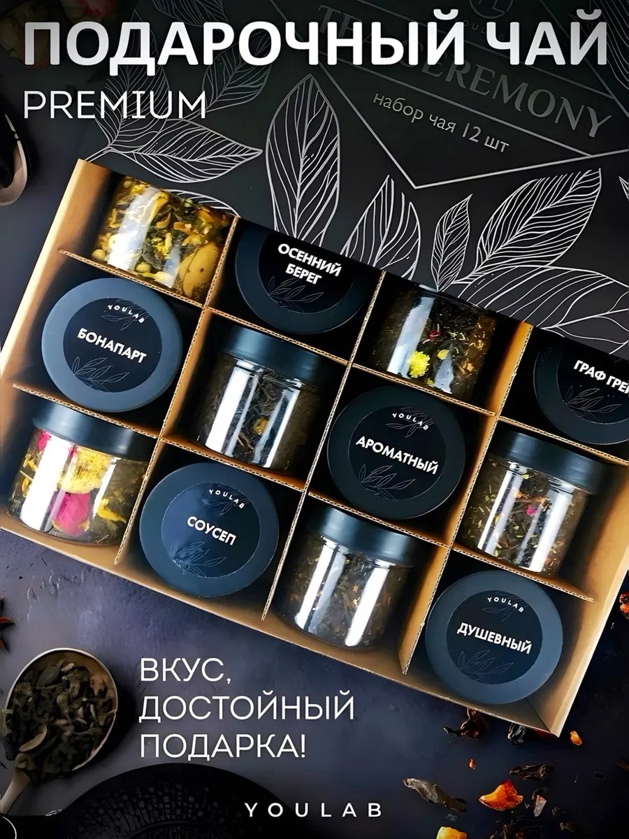 Оригинальный чайный подарочный бокс в стильной коробке — это премиальное ассорти натуральных чаев в баночках. Внутри 12 баночек с листовой, крупнолистовой, рассыпной и фруктовой коллекцией с кусочками фруктов, травяной и успокаивающий чай для вечерних церемоний, а также бодрящий заварной чай для энергичного утра. Такой чайный набор станет универсальным подарком на любой праздник: от дня рождения до свадьбы, годовщину или Новый год 2026.