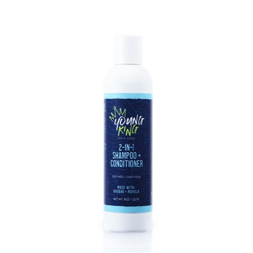 YOUNG KING HAIR CARE Kids 2-in-1 Shampoo & Conditioner For Boys | Cleanse and Hydrate Natural Curls | Plant-Based and Harm-Free | 8 oz