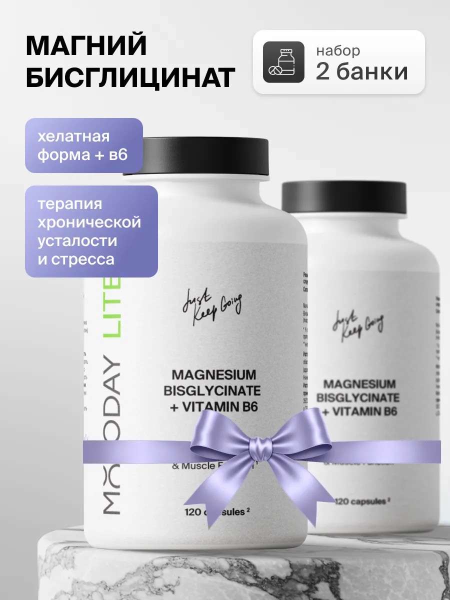 Магний хелат бисглицинат + витамин В6, набор 2 шт