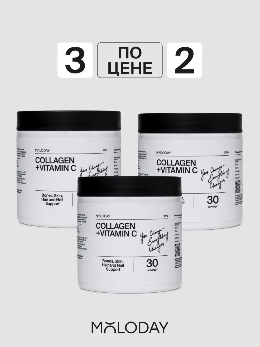 MOLODAY Пептидный коллаген порошок + Витамин C, набор 3 шт