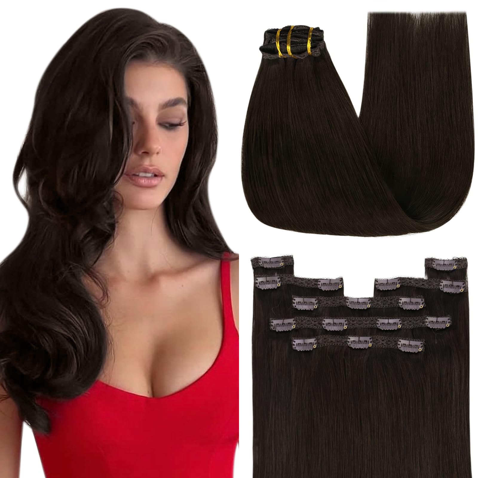 Youngsee clip in Extensions real hair brown 50 cm clip in extensions dark brown remy real hair extensions clip brown smooth clip in hair extensions clip in real hair invisible hair 120g #2