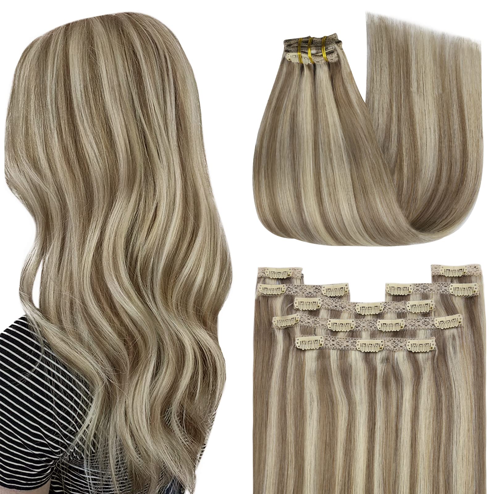 Youngsee Clip in Extensions Real Hair Brown Blond Extensions Clip 40 cm real hair clip in Extensions light brown with blond clip extensions real hair Remy hair extensions clip in 120g #p8a/60 40 cm (7PCs) 1-clip-3- #p8a/60