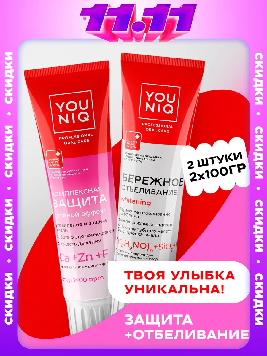 YOUNIQ Зубная паста Отбеливающая и Комплексная защита 2 шт Юник