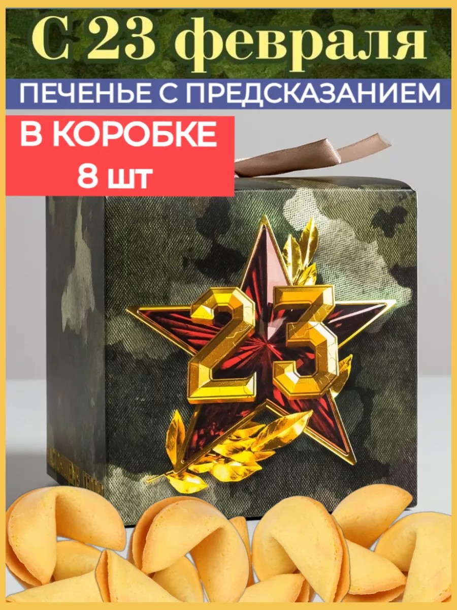 Подарочный набор печенья с предсказаниями 23 февраля. 8 шт в коробке Подарочное Праздничное Печенье с предсказаниями в подарочной коробке необычный, вкусный сувенир или подарок, который обязательно поднимет настроение и вызовет искреннюю улыбку у каждого.Оригинальный сладкий подарок презент другу, любимому,маме,сестре,внучке,бабушке,коллеге,мужу,жениху,папе,дедушке,сыну,внуку, брату,юноше,мальчику,однокласснику .В каждом печенье индивидуальное предсказание.Каждый кусочек этого печенья позволит окунуться в праздник. Этот сладкий десерт может стать отличным дополнением к подарку, ведь все любят яркие и вкусные сладости.Это уникальное и запоминающееся подарок, который может привнести в жизнь немного веселья и интриги. Используйте эти маленькие презенты как комплименты клиентам в салонах красоты, спортзале или кафе. Удивите дорогих вам людей нашим натуральным продуктом. Набор станет отличным подарком сыну, дочери или крестнику. Картонная коробка надежно защитит содержимое от повреждений. Не упустите возможность обрадовать своих детей! Подарите им море впечатлений и волшебства! бокс сладкий подарок на День Защитника Отечества для детей и взрослых. Наш подарочный набор из 8 печений с предсказаниями в подарочной коробке станет отличным подарком или презентом. вкусные,сюрприз,подарки сладости мужчине детям парню другу мужу любимому детский коллеге папе для мужчины папы для детей взрослых для парня отцу ребенку мужской брату для друга дяде коллеге внуку мальчику родственникам