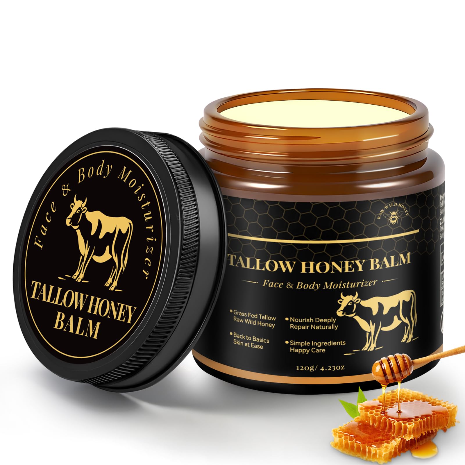 YOURTONE Beef Tallow for Skin Tallow and Honey Balm for Face Grass-Fed Beef Tallow Face Moisturizer Deeply Moisturizing for Dry & Sensitive Skin (4.23oz/120g)
