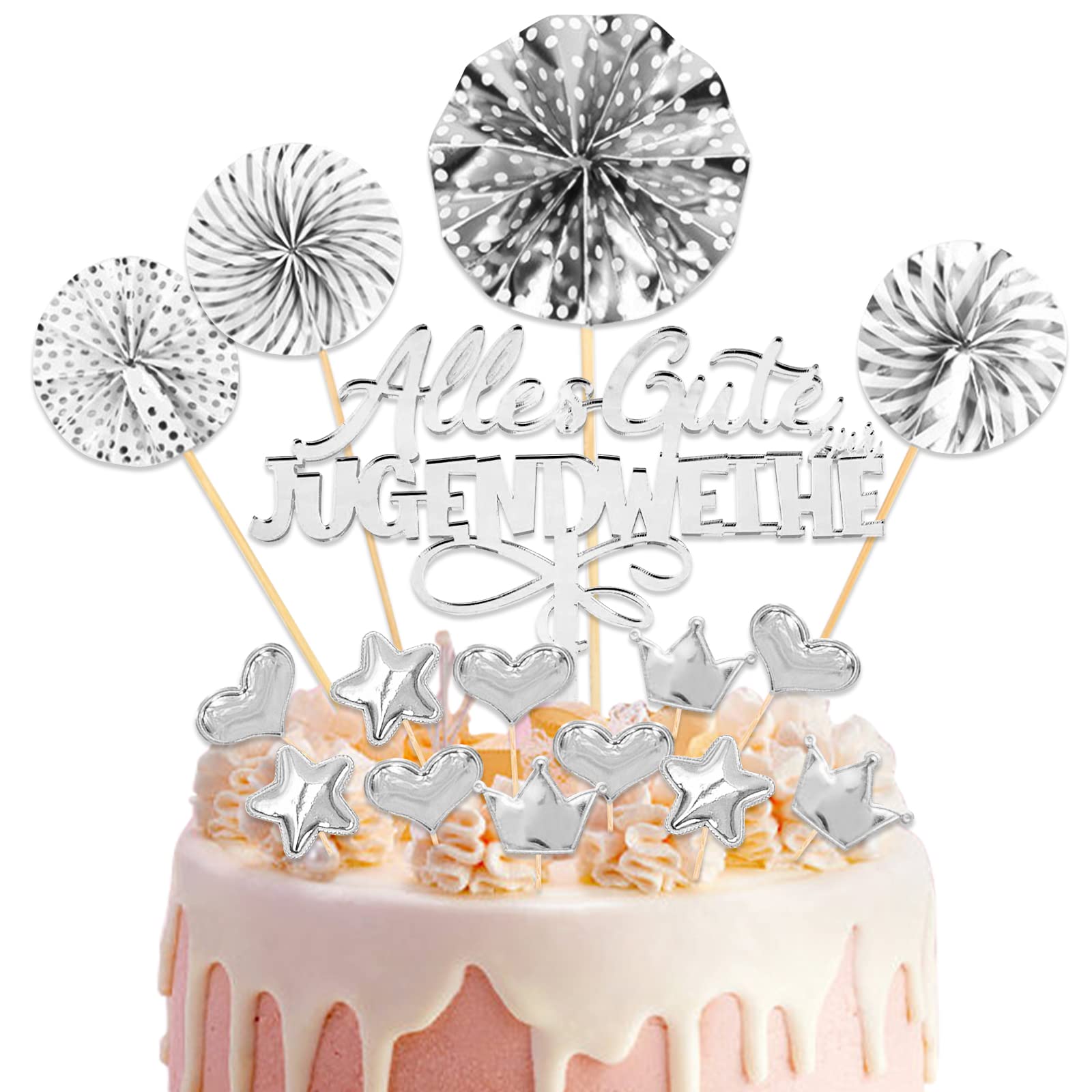 ?? ?Quality service? If you have any questions or dissatisfaction with the product you have received, please feel free to contact us, we will solve your problem within 24 hours.?? ?Extensive use? Jugendwaihe is a festival event, all the best for the youth consecration cake decoration not only suitable for birthday parties for young people, but also for graduation celebrations, adult emonities and so on.?? ?High quality materials? All the best for the youth consecration It consists of high -quality acrylic materials, safe and environmentally friendly, non -toxic and tasteless.Paper fan flower made of high quality cardboard.The Pentagram Krone love card consists of an environmentally friendly PU, with light colors.The cake decoration package can be reused.?? ?Youth consecration Tortendeko Set? 1 piece of silvery all the best for the youth consecration cake plug, 4 silvery sun origami flowers, 5 silvery small pentagram, 5 silvery small hearts, 5 silvery small crowns, full satisfaction of their decoration for youth consecration cake.?? ?Important moments experience? Youth consecration cake decoration as a symbol for the transition from childhood to adulthood, it is a celebration full of positive energy and hope.Our youth consecration Tortendeko can strengthen the festive atmosphere so that you and your family and friends can spend this unforgettable time.???Qualitätsservice?Wenn Sie Fragen oder Unzufriedenheit mit dem erhaltenen Produkt haben, können Sie sich gerne an uns wenden, wir werden Ihr Problem innerhalb von 24 Stunden lösen. ???Extensive Nutzung?Jugendwaihe ist ein Fest Event, Alles gute zur jugendweihe kuchendekoration Nicht nur geeignet für Geburtstagsfeiern für Jugendliche, sondern auch für Abschlussfeiern, Erwachsenenzeremonien und so weiter. ???Hochwertige Materialien?Alles Gute zur Jugendweihe Es besteht aus hochwertigen Acrylmaterialien, sicher und umweltfreundlich, ungiftig und geschmacklos. Papier Fächerblume aus hochwertigem Karton. Die Pentagram Krone Liebeskarte besteht aus umweltfreundlichem PU, mit hellen Farben. Die Kuchen Dekoration Paket kann wiederverwendet werden. ???Jugendweihe Tortendeko Set?1 Stück Silbrig Alles Gute zur Jugendweihe Tortenstecker, 4 silbrig Sonne Origami Blumen, 5 silbrig kleines Pentagramm, 5 silbrig kleine Herzen, 5 silbrig kleine Kronen, Volle Befriedigung Ihrer Dekoration für Jugendweihe Kuchen. ???Wichtige Momente Miterleben?Jugendweihe Kuchen Deko Als Symbol für den Übergang von der Kindheit zum Erwachsenenalter ist es eine Feier voller positiver Energie und Hoffnung. Unsere Jugendweihe Tortendeko können die festliche Atmosphäre verstärken, so dass Sie und Ihre Familie und Freunde diese unvergessliche Zeit verbringen können.Jugendweihe Tortendeko Cake Topper Alles Gute zur Jugendweihe Tortenstecker Acryl Jugendweihe Deko Junge Mädchen Geburtstag