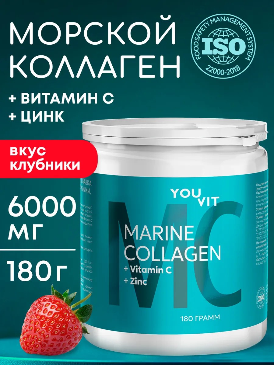 Морской коллаген со вкусом клубники YOUVIT 180 г