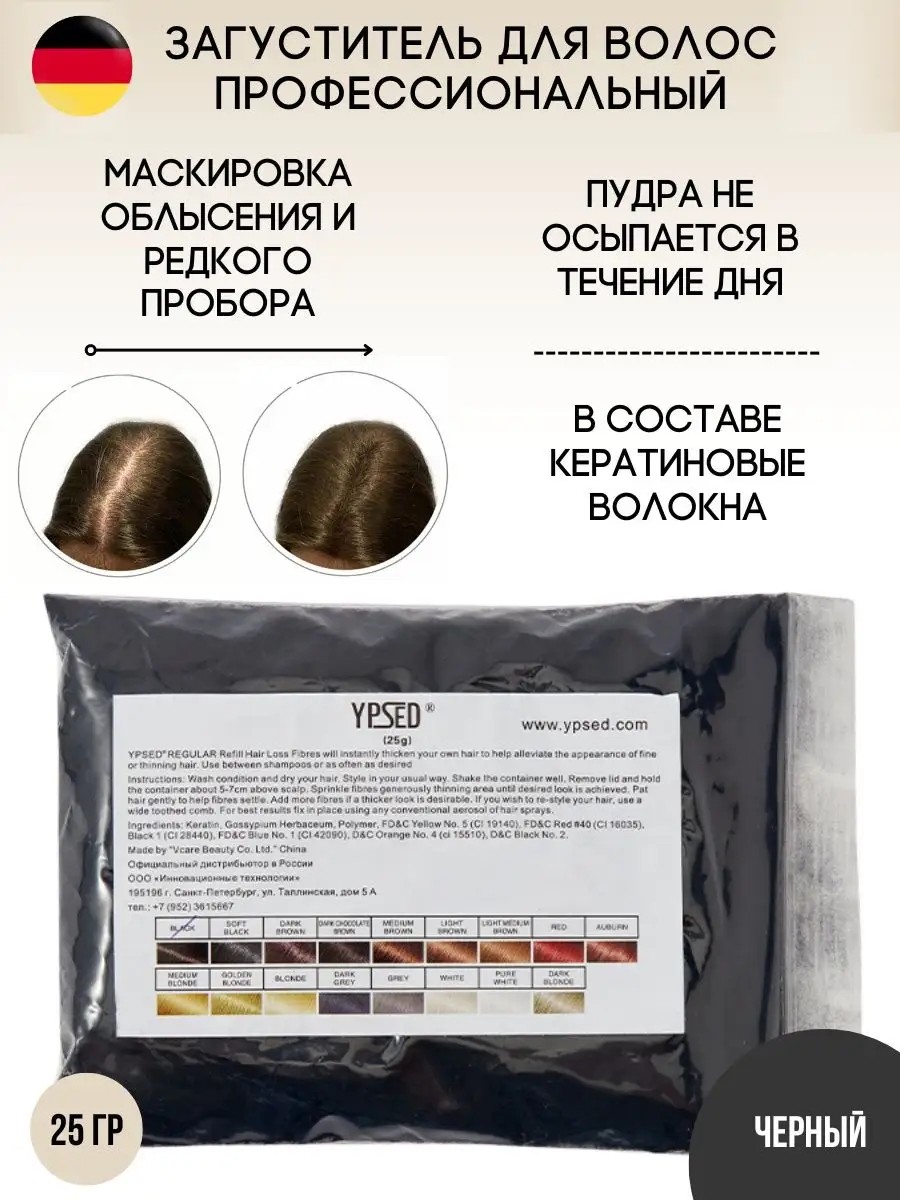 Легкая текстура удобна для применения на сухих волосах. Средство работает на основе статического электричества, равномерно прикрепляясь к каждому волосу без размазывания. Оно безопасно для использования и имеет положительные отзывы. Компактная упаковка обеспечивает удобство применения. Рекомендуется закрепить результат фиксирующим спреем. Эффективно маскирует проблемные области с редеющими волосами и лысиной, совместимо с любыми видами лечения.