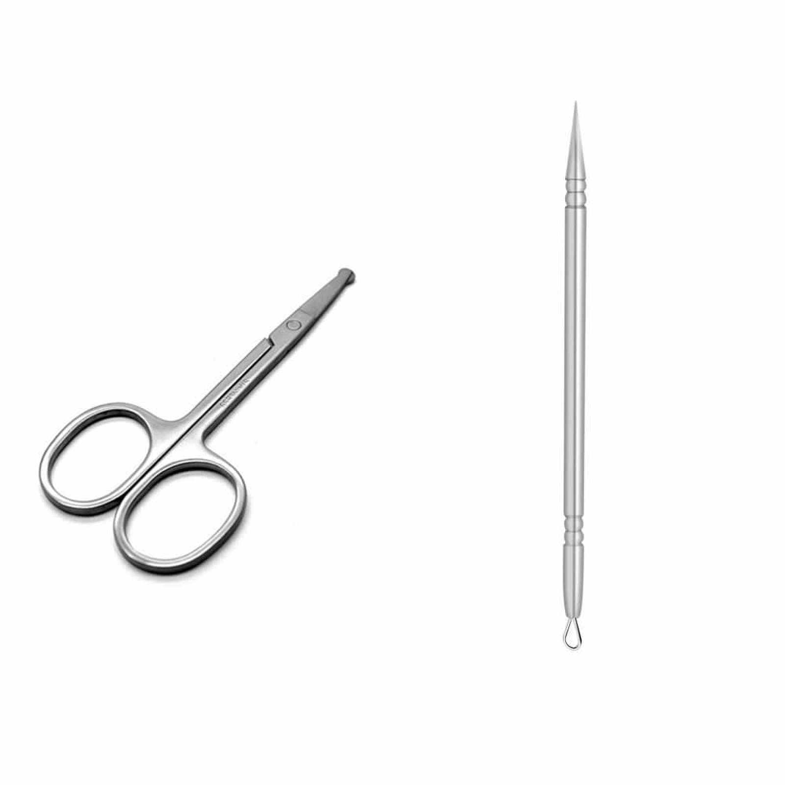 YSUUZRL 2 Pcs (Nasal hair scissors+Glass bead needle) Whitehead Removal Acne Blackhead Removal Needles Tweezers Beauty Salon Pimples Needles Deep Cleaner Clip Tool