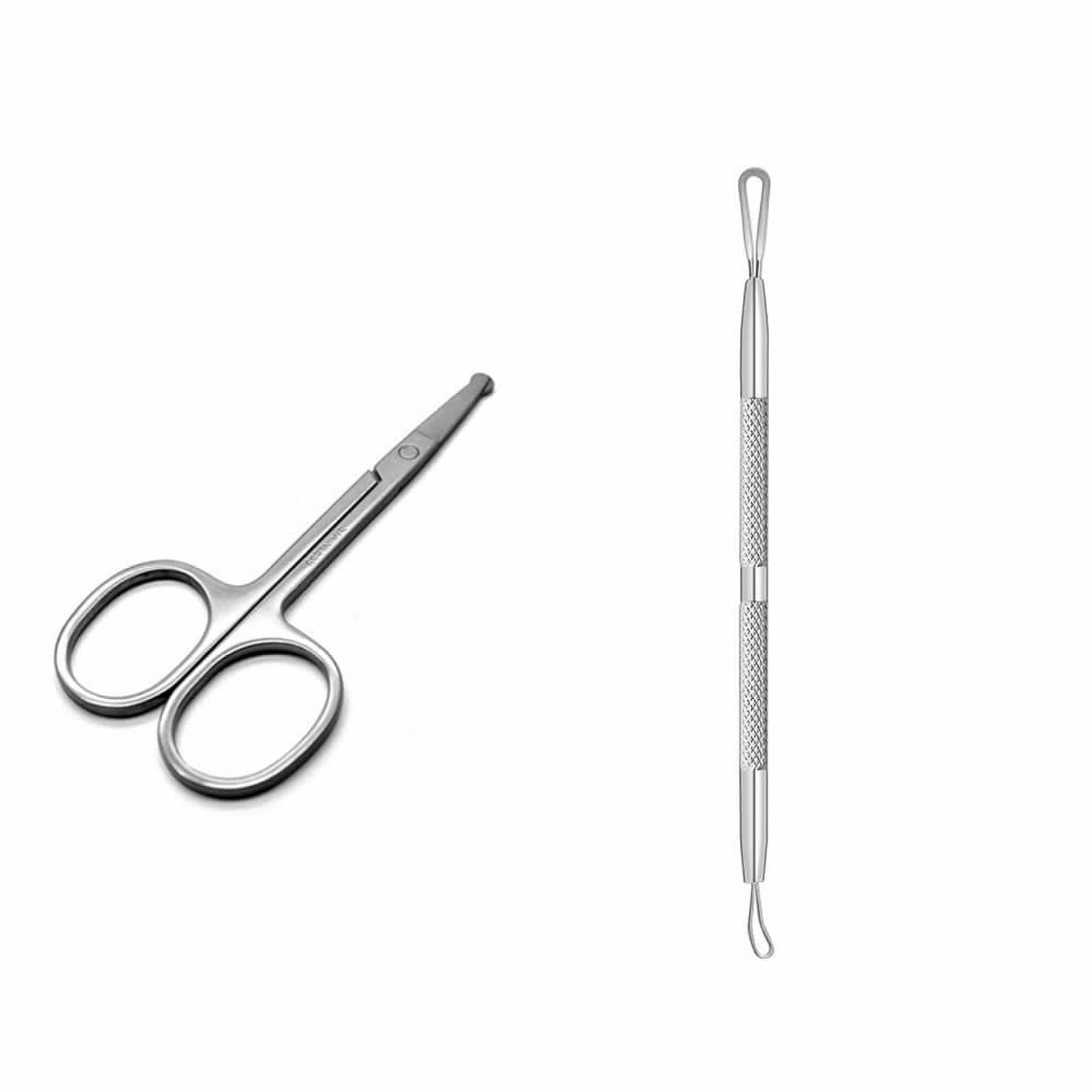YSUUZRL 2 Pcs (Nasal hair scissors+Long two-headed circles) Whitehead Removal Acne Blackhead Removal Needles Tweezers Beauty Salon Pimples Needles Deep Cleaner Clip Tool