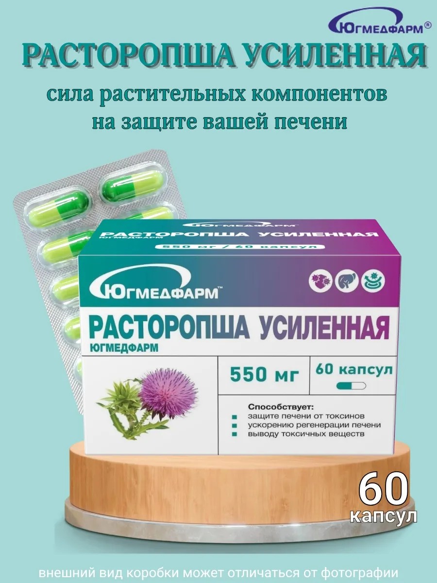 Торговое наименованиеБиологически активная добавка к пище "Расторопша Усиленная Югмедфарм" (капсулы массовой 550 мг).