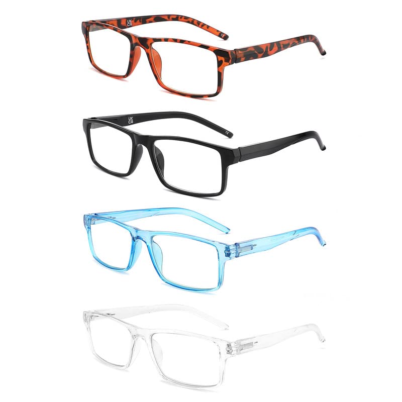 Yuluki 4 Pack Reading Glasses Blue Light Blocking Quality Rectangle Frame Mens Womens Computer Readers with Spring Hinge +2.5 4 Pack Mix 2.5 x