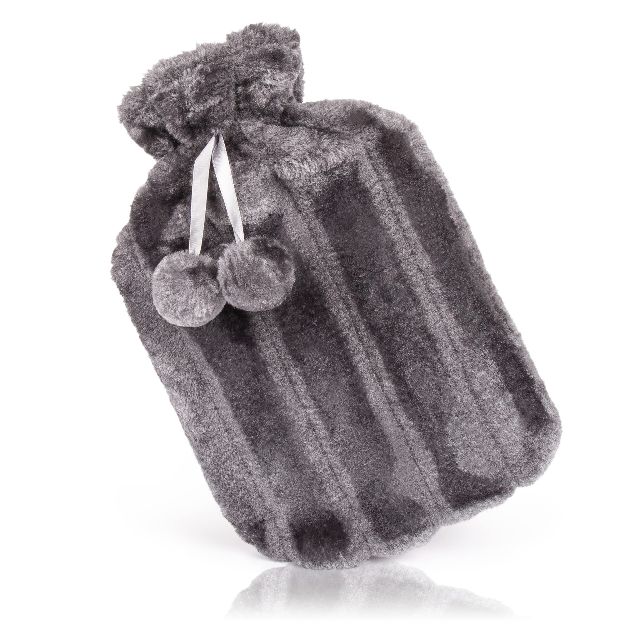 Yumaya hot water bottle with a soft cover 1.8 l - bed bottle made of high quality natural rubber |Gives comfort and warmth |Suitable for women men and children |Great birthday present |Gray