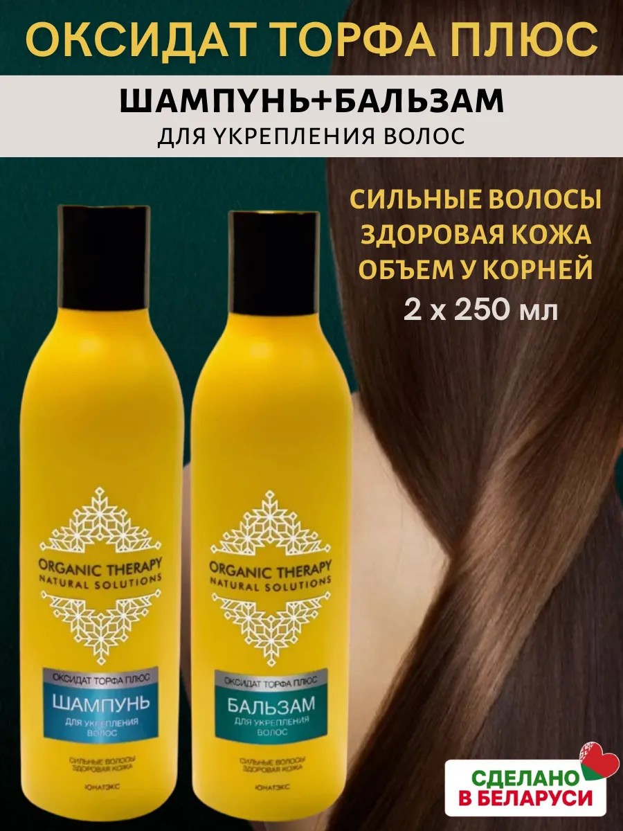 Набор из лечебных шампуни и бальзама для волос на основе Оксидата торфа плюс от белорусского бренда Юнатэкс.