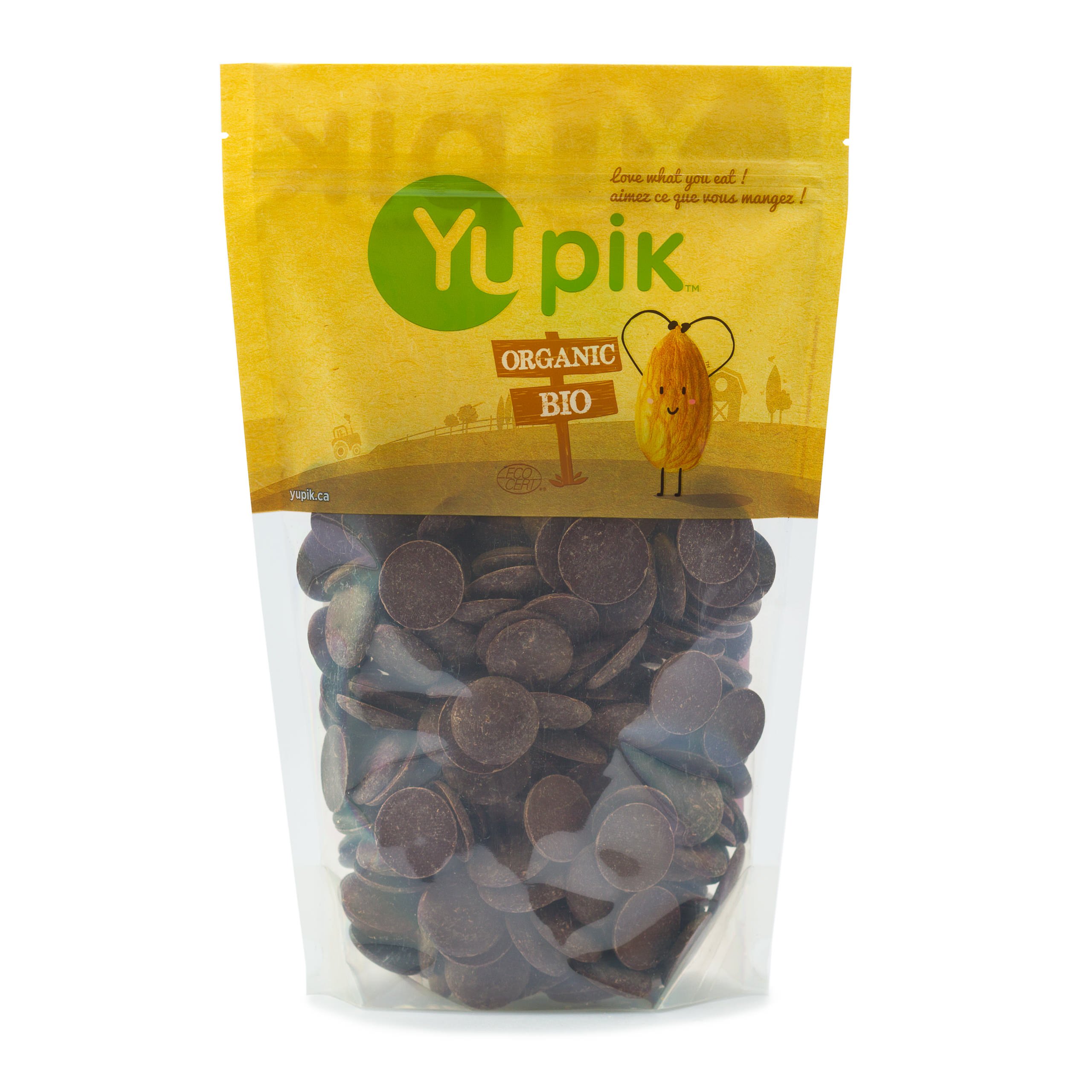 Yupik Organic 70% Dark Chocolate Wafers are dark, lightly sweetened, disc-shaped chocolates ready to be devoured – and will you ever. You’ll finish these off before you even get the chance to share them. Rich and deep in chocolate flavor, while smooth and velvety in texture, these confections are ideal for snacking or for baking applications. Buy Organic 70% Dark Chocolate Wafers to keep your cupboard well-stocked with this pantry essential. Conveniently pack portion controlled baggie’s to store your car, backpack, or desk with this decadent snack.