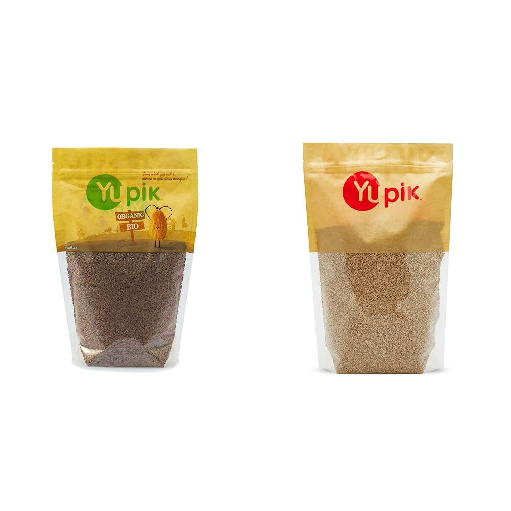 Yupik Organic Brown Flax Seeds, Non-GMO, Vegan, Gluten-Free, 1Kg A powerhouse of nutrition, Organic Brown Flax Seeds may be small but they pack a punch! Whole, firm, dark brown, teardrop-shaped flax seeds are crunchy and slightly nutty in taste. Versatile to in both sweet and savory foods, use flax seeds right out of the bag or ground into a powder to extend usage. Buy Organic Brown Flax Seeds to create healthy and nutritious snacks, meals, and treats with this powerhouse product! Yupik Sesame Seeds (Natural), 1Kg Yupik Natural Sesame Seeds are whole seeds without the addition of oil, fat, salt, or other additives! Nutty and creamy in flavor, sesame seeds are also crisp and seedy in texture. Natural Sesame Seeds also blend and roast easily for either topping foods, or baking and cooking applications. Buy Natural Sesame Seeds to keep your cupboard well-stocked with this pantry essential! Certified kosher.