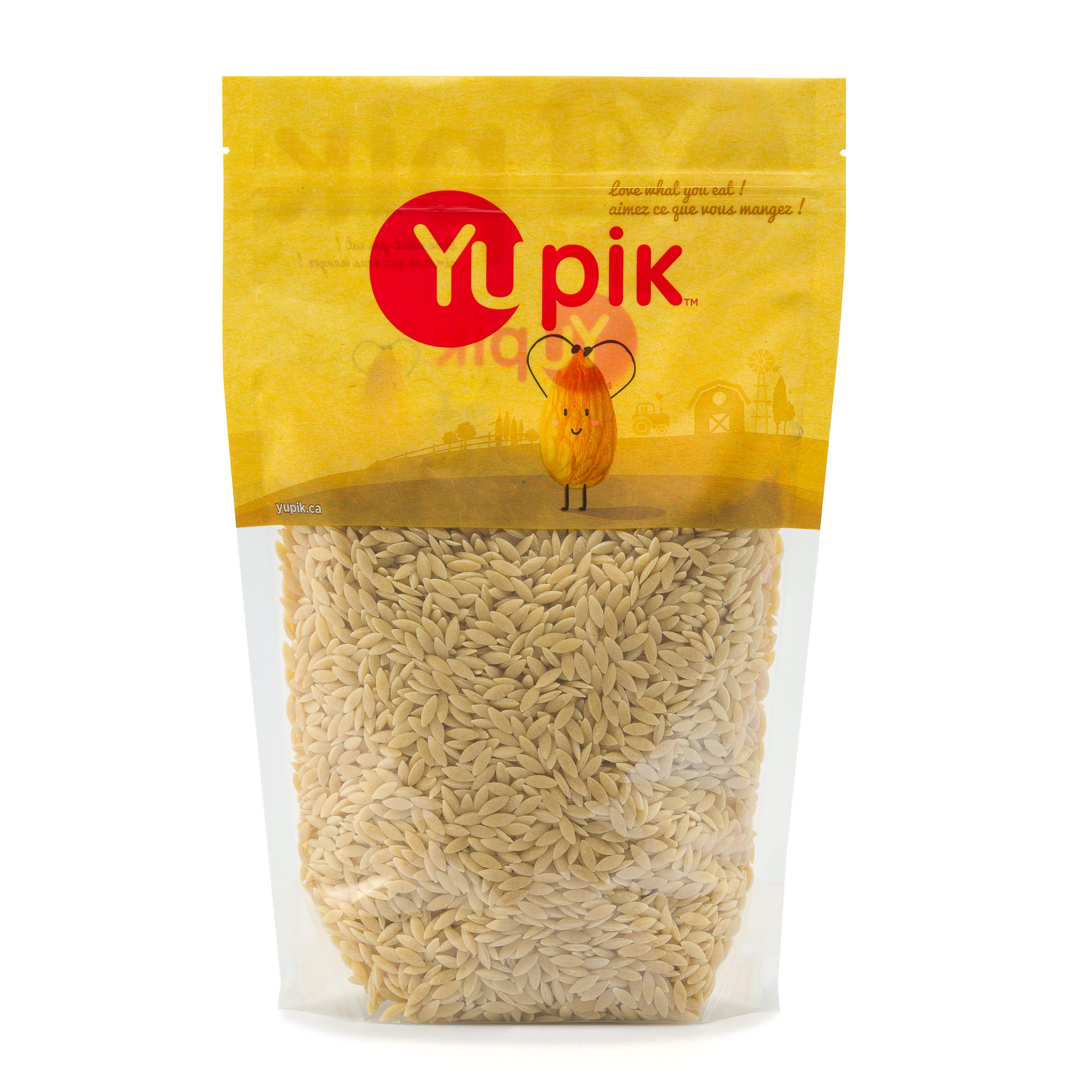 This rice-sized pasta will lighten things up! Want the comfort of pasta without the heaviness? Discover how enjoyable and versatile Yupik's Plain Orzo can be! Made with enriched durum semolina flour, Orzo is slightly nutty in flavor and creamy in texture since its long-grain shape releases more starch when cooking. Paired with any sauce or vinaigrette, Orzo is a light and refreshing addition to your pasta line-up!Create delicious meals, side dishes, salads, soups, and much more. Suggested preparation: Cook 1 cup of orzo in 2 cups of boiling water or broth for 15 minutes, or until all water has absorbed. Certified kosher. Rice-like pasta.