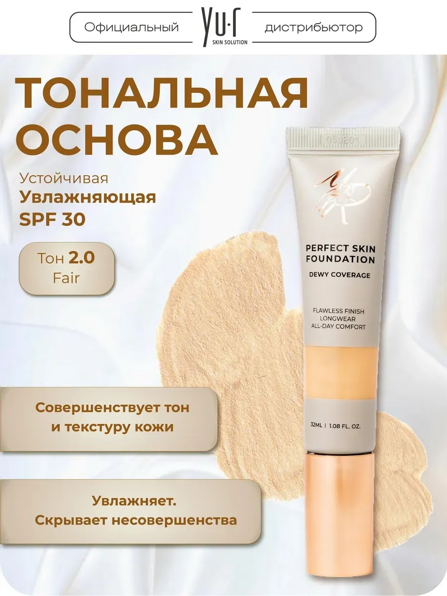 Устойчивая тональная основа увлажняющая Yu.R Dewy Coverage Foundation, тон 2.0 fair, 32 мл. (тональный крем).
