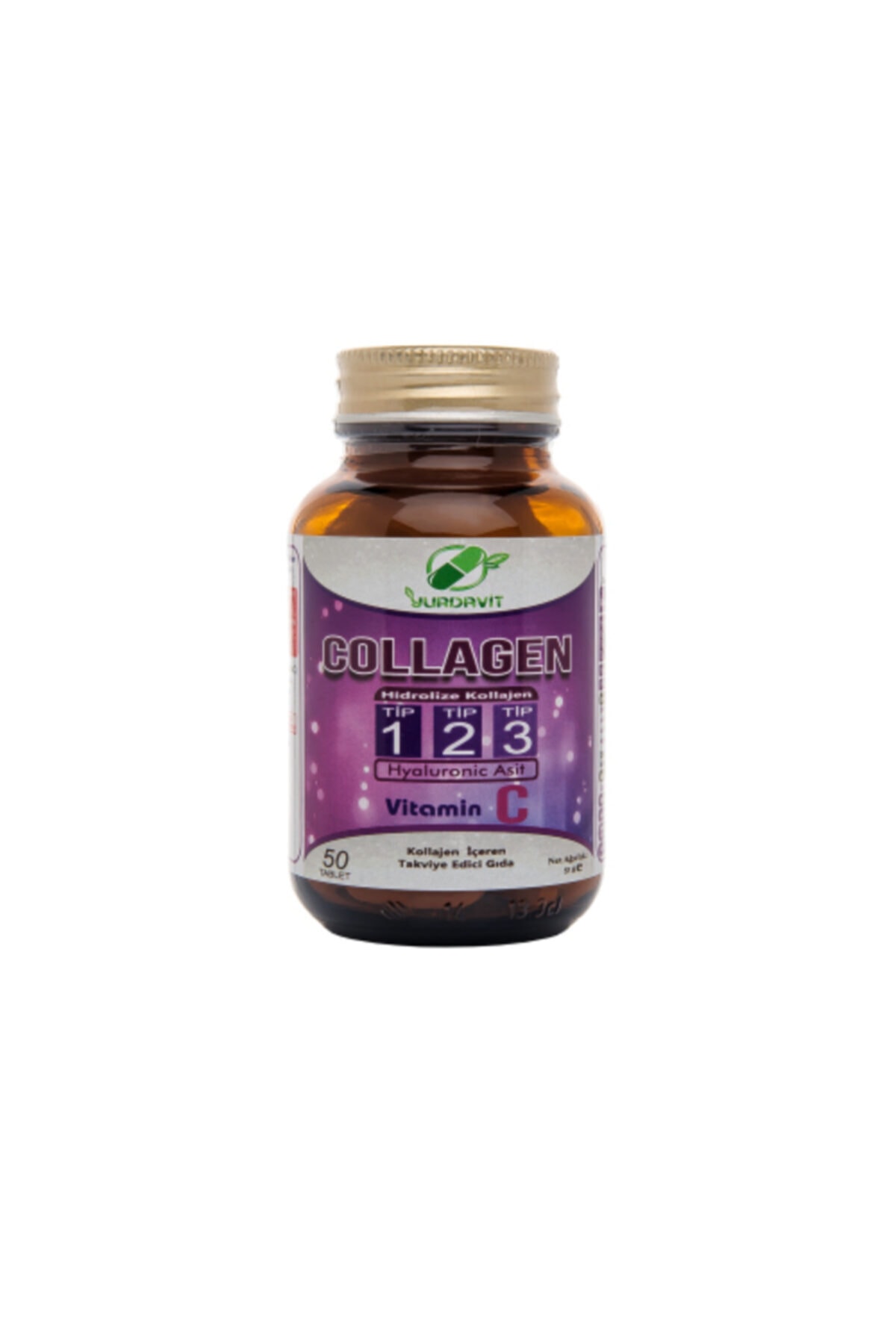Yurdavit Hydrolyzed Collagen Type 1-2-3 Hyaluronic Acid Vitamin C 50 Tablets Unflavored