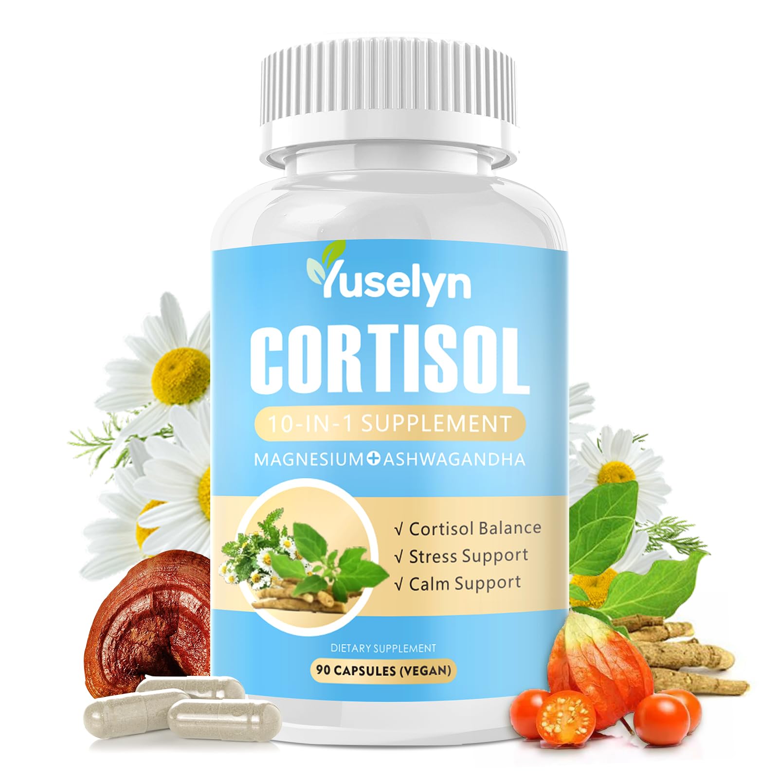 Yuselyn Cortisol Supplements for Women & Men 10-in-1 Cortisol Detox Manager - High Cortisol Lowering Supplements with Magnesium Ashwagandha & L-Theanine for Balanced Calm & Stress Relief
