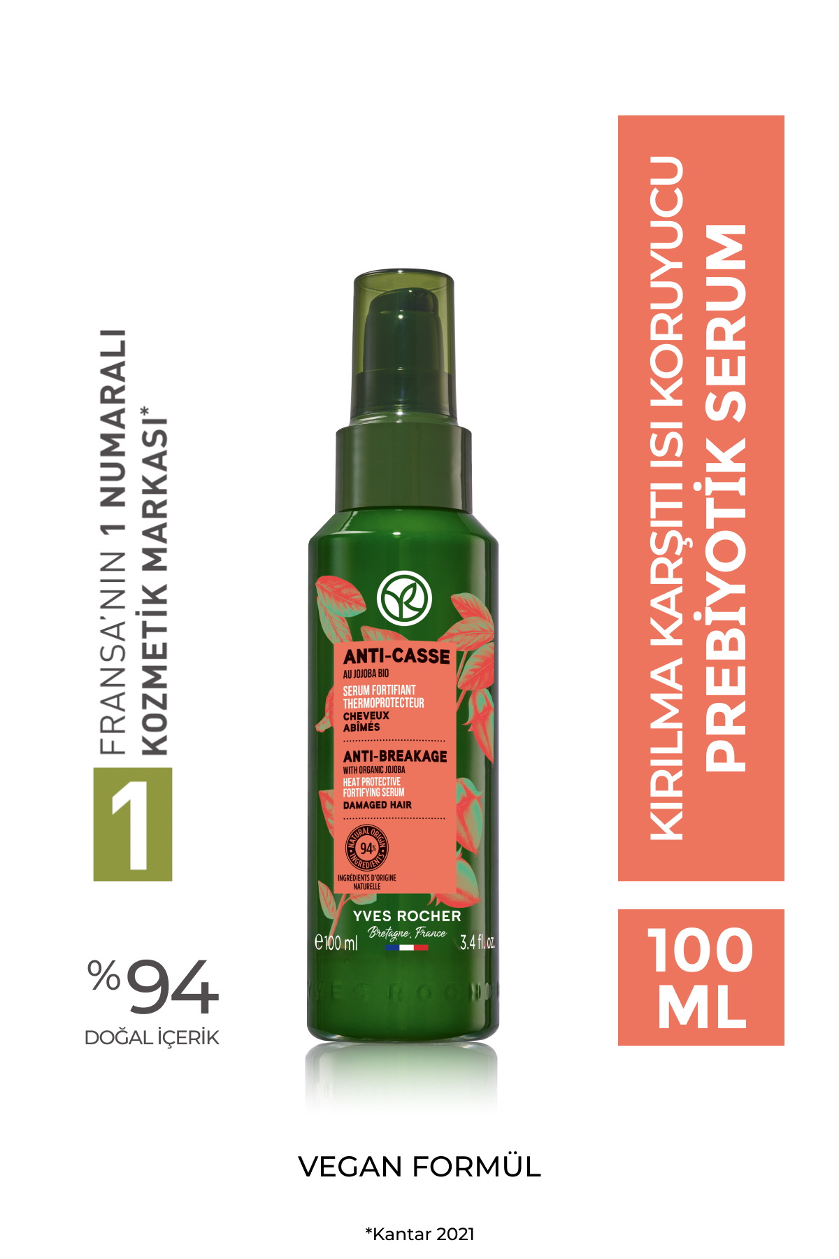 Yves Rocher?den yipranmis saçlara özel kirilma karsiti serum! Yipranmis saçlar, nemini ve canliligini kaybeder bu nedenle özel bakima ihtiyaç duyar.Saça tüm ihtiyaci olan bakimi sunan kirilma karsiti serumun formülündeki Organik Agav saç köklerinin derinlemesine beslenmesine yardimci olur. Organik Jojoba yagi ise saç tellerinin onarilmasini saglar, saçin kaybettigi nemi geri kazanmasina yardimci olur. 230 dereceye kadar saçlari isidan korur. Hafif ve yagsiz dokusuyla saçi agirlastirmadan uzman bakim yapar. Serinin diger ürünleri ile kullanildiginda daha etkili sonuç verecek bu mucizevi serumu kesfedin!Uygulama: Temizlenmis kuru yada nemli saça haftada 3 kez uygulayiniz, durulamayiniz.Ambalaj Türü : Pompali Sise