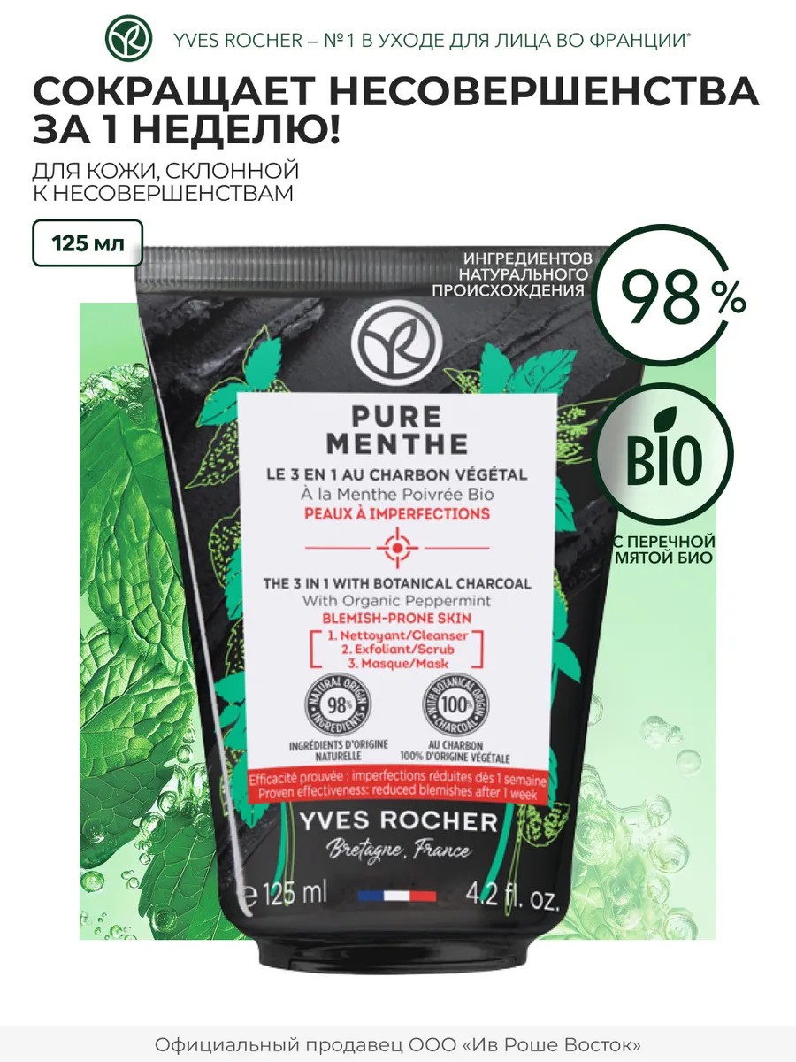 Очищающее средство и маска для лица 3в1 с растительным углем