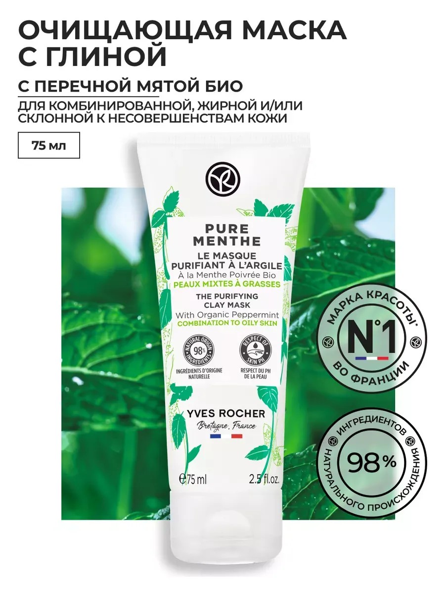YVES ROCHER Маска очищающая с глиной и перечной мятой