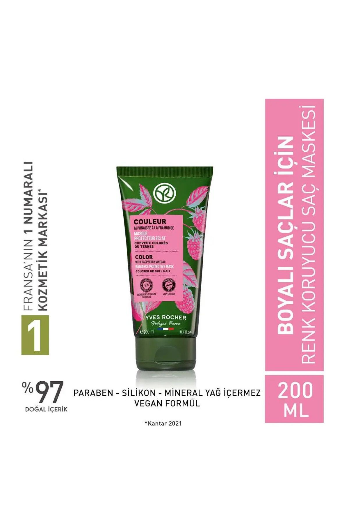 Boyali saçlar için bakimin önemli bir parçasi olan saç maskesi ile saç renginiz daha uzun süre canli ve parlak görünsün! Renk koruyucu maske, boyadan kaynaklanan hasarlari onarir, boyali veya mat saçlari agirlastirmadan besler. Frambuaz sirkesinin kireç önleyici ve anti oksidan özelligi sayesinde saçlarin mat ve sagliksiz görünümünün önüne geçer.
