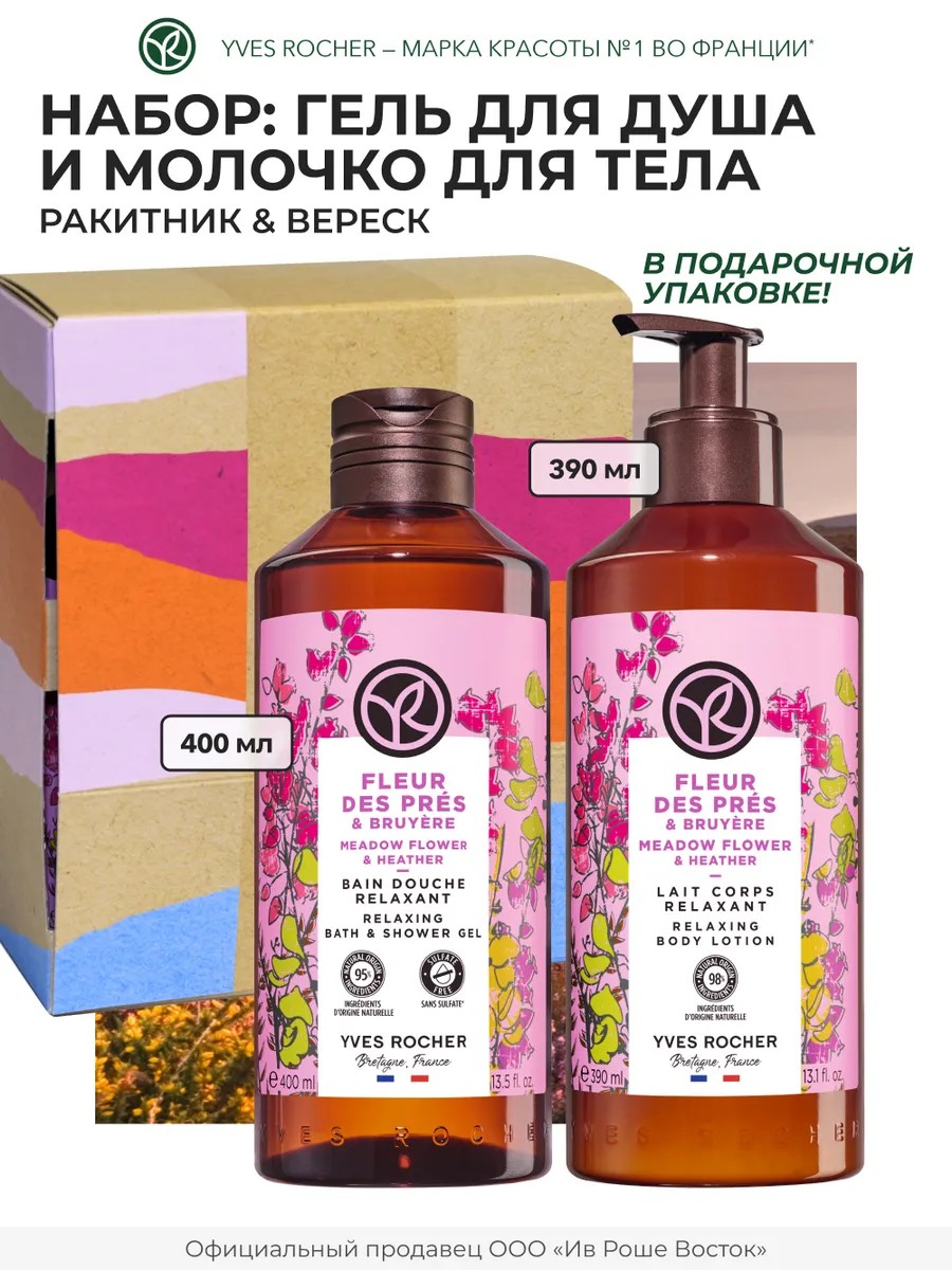 Подарочный набор косметики для ухода за телом с Ракитником и Вереском Ив Роше представляет собой идеальное решение для тех, кто ценит органический и эффективный уход за кожей тела и рук. Набор для тела включает в себя средства для очищения и увлажнения, что делает его универсальным выбором для ежедневного ухода.